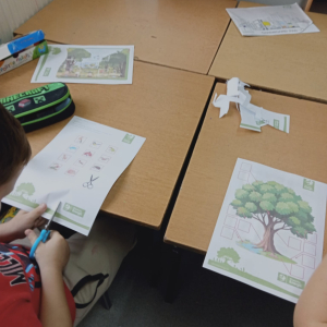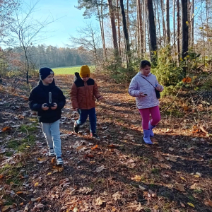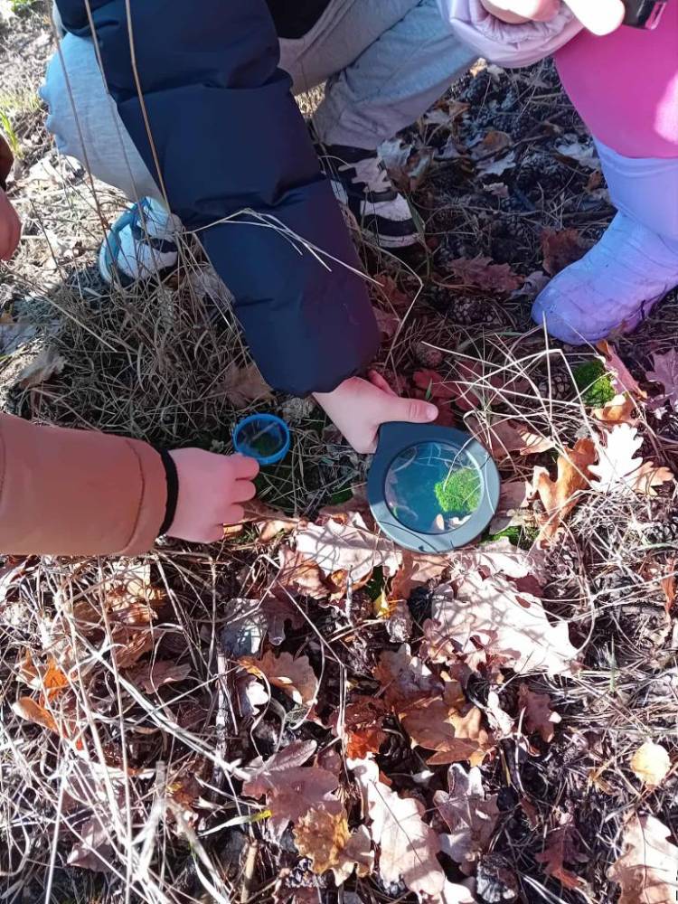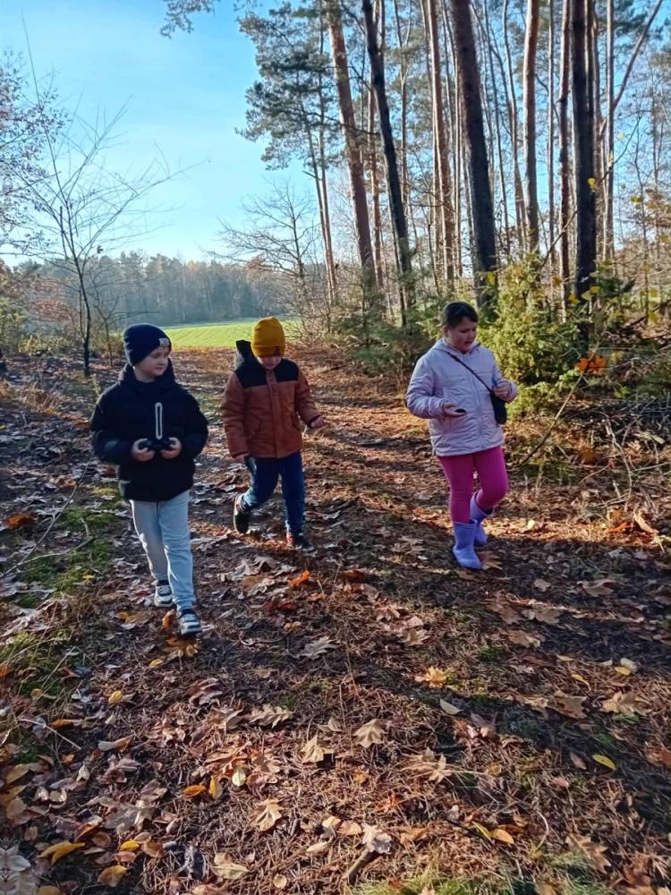 Następnie opuściliśmy mury szkoły i wyruszyliśmy w teren — uczniowie byli w lesie, gdzie mieli okazję obserwować przyrodę i poznawać różne ekosystemy.