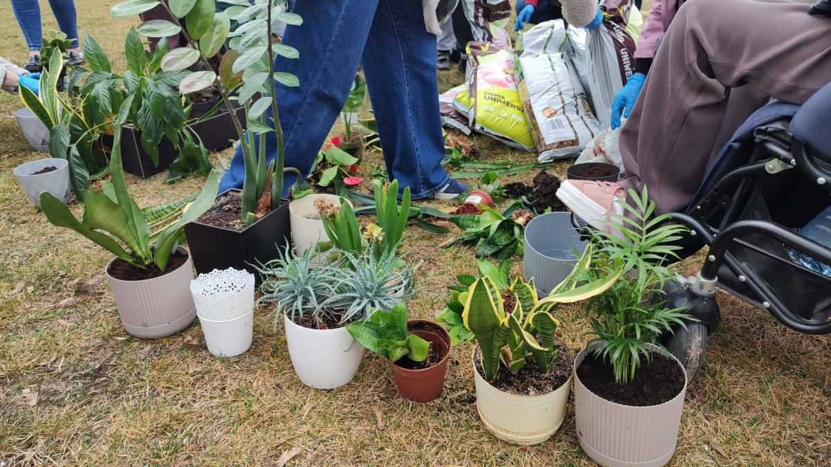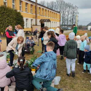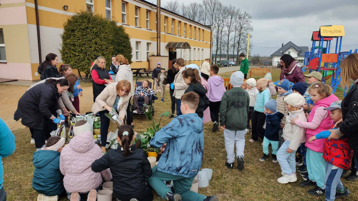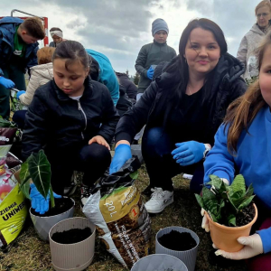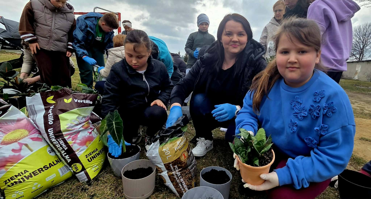 Akcja sadzenia kwiatów doniczkowych, w ramach programu grantowego Fundacji ORLEN, Ekoczynni