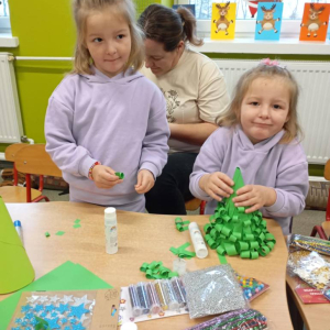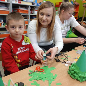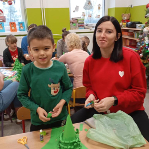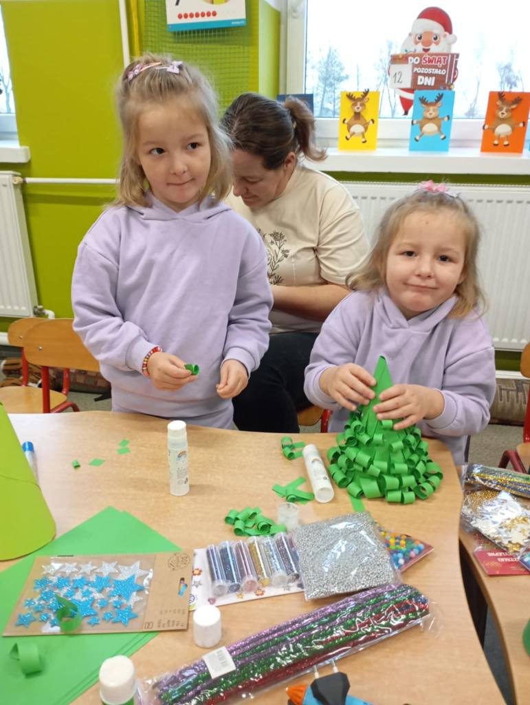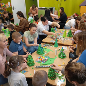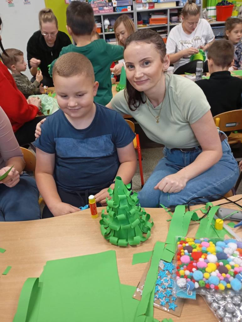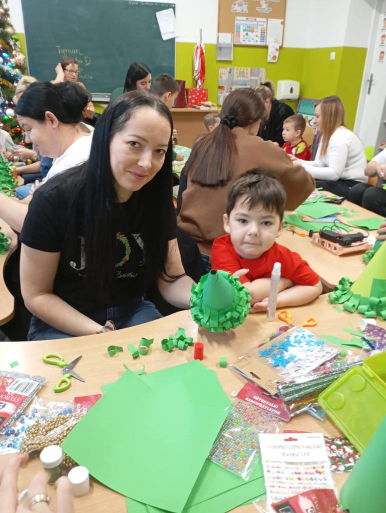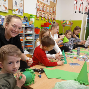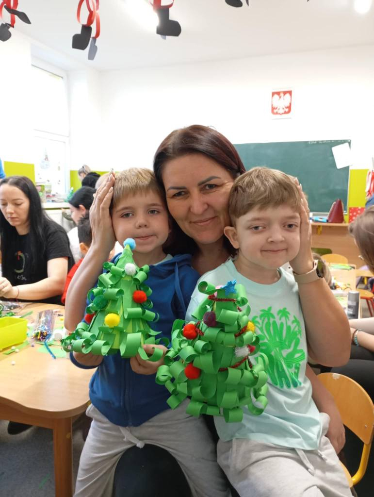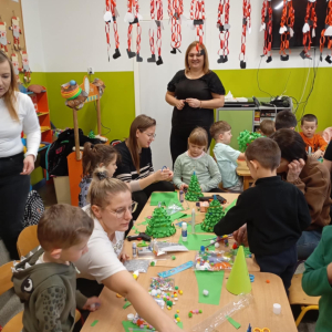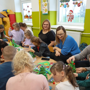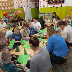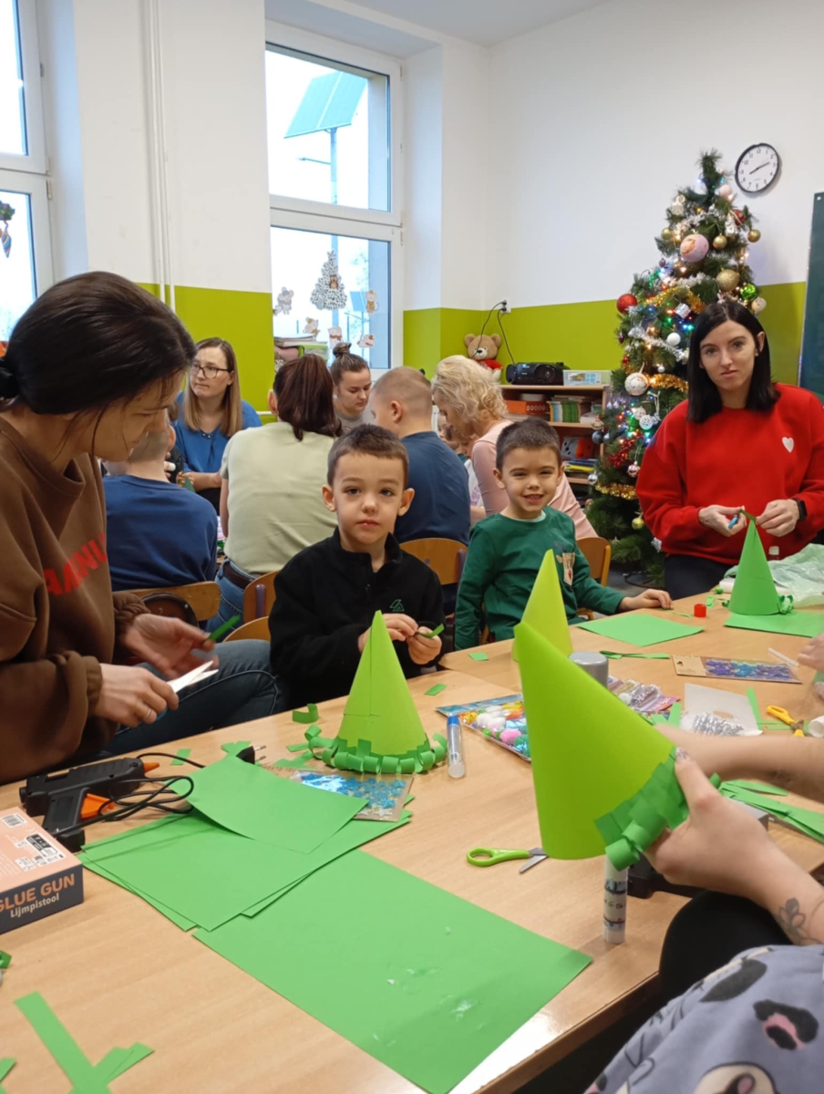 Dziś w naszej szkole odbyły się wyjątkowe warsztaty bożonarodzeniowe, w których udział wzięli rodzice wraz z dziećmi z grup przedszkolnych. Było to piękne spotkanie, pełne uśmiechu, twórczej pracy i świątecznego nastroju. Podczas warsztatów uczestnicy wspólnie wykonywali choinki świąteczne, które następnie stały się wspaniałą ozdobą naszych sal klasowych. Każda praca była niepowtarzalna i odzwierciedlała kreatywność oraz zaangażowanie zarówno dzieci, jak i dorosłych. Celem warsztatów było wzmacnianie więzi rodzinnych oraz budowanie wspólnych, wartościowych wspomnień. Takie inicjatywy dają możliwość spędzenia czasu razem, łącząc dobrą zabawę z rozwijaniem wyobraźni i zdolności manualnych. Czas spędzony podczas warsztatów upłynął w miłej i radosnej atmosferze, a świąteczny klimat towarzyszył nam od pierwszych chwil. Dziękujemy wszystkim uczestnikom za obecność, zaangażowanie i wspólnie stworzoną, magiczną atmosferę zbliżających się Świąt Bożego Narodzenia.