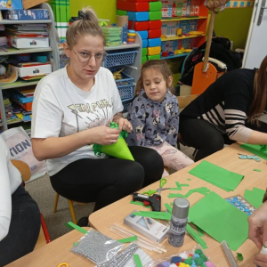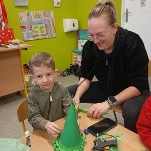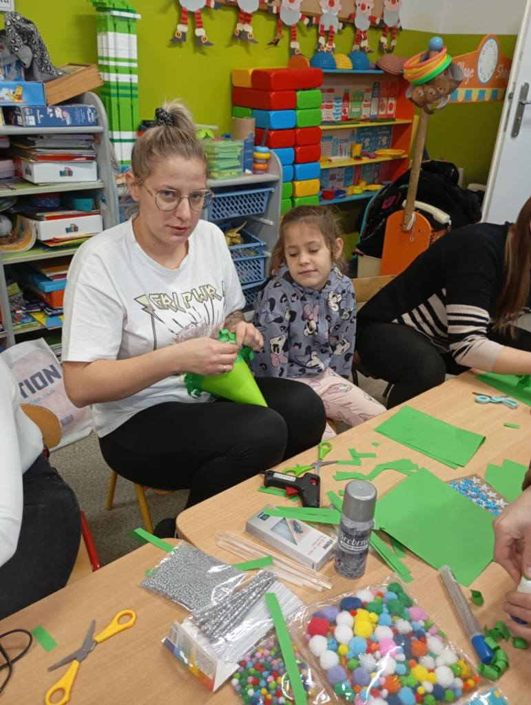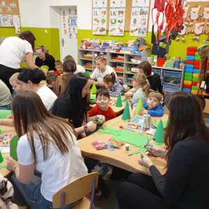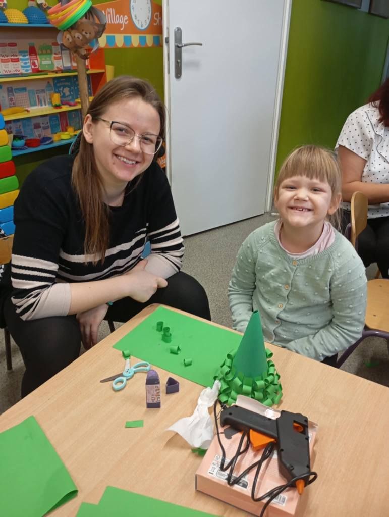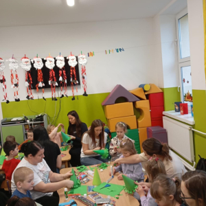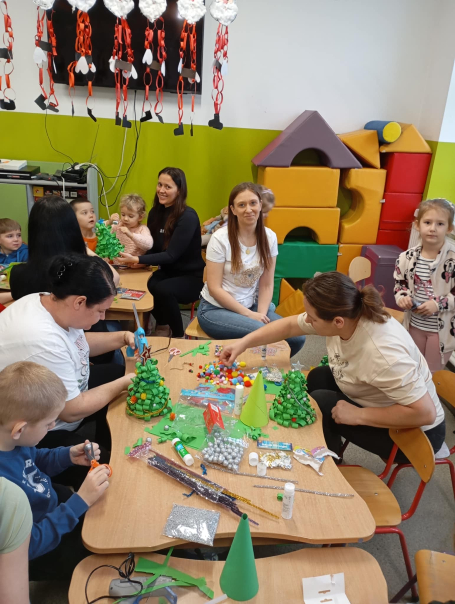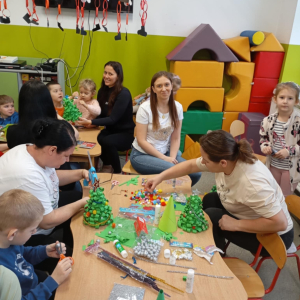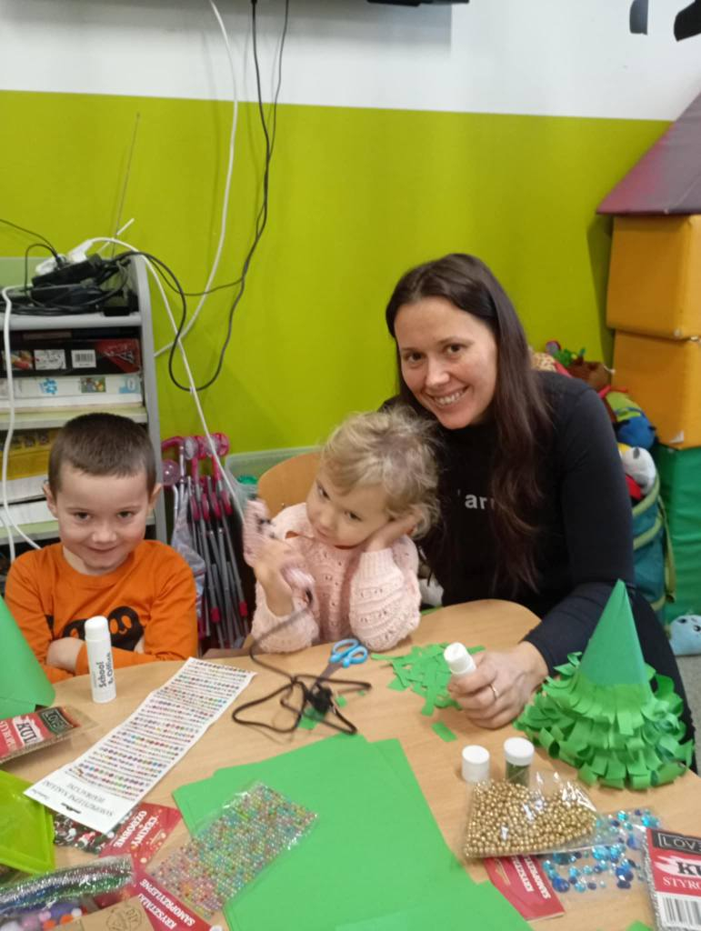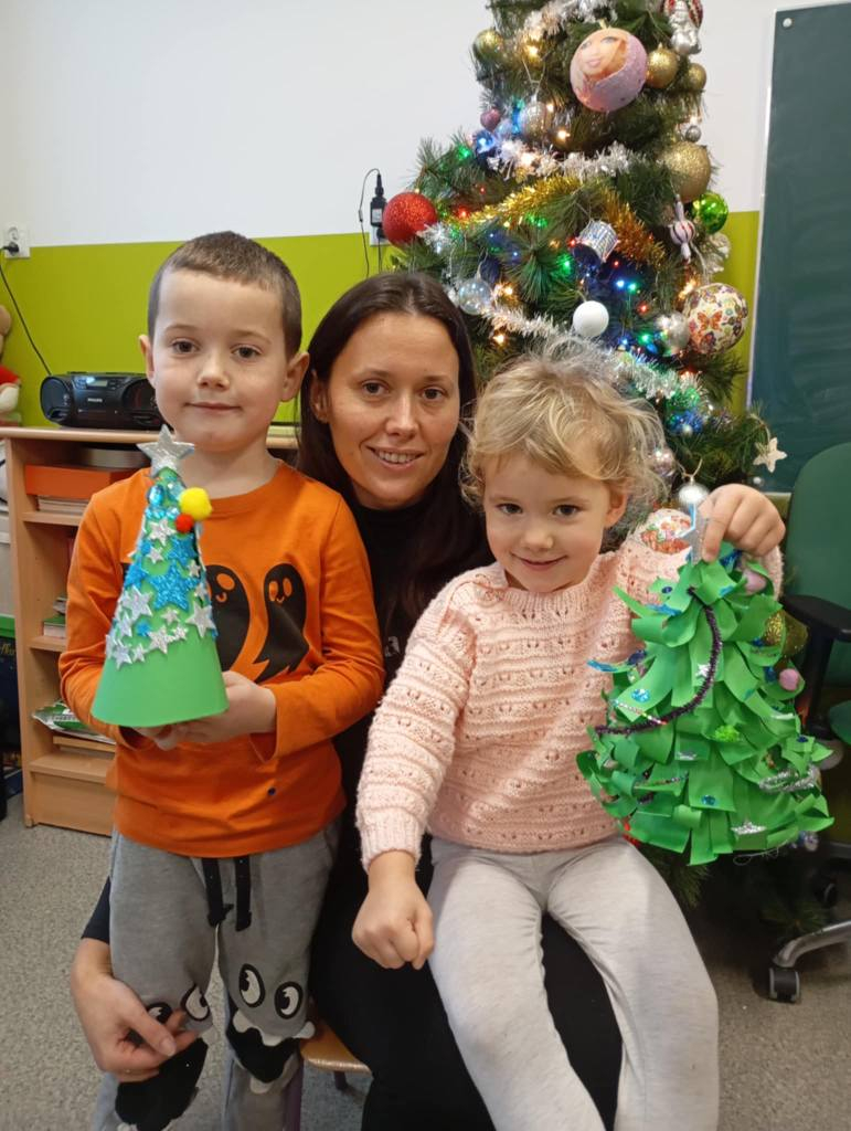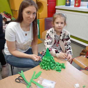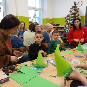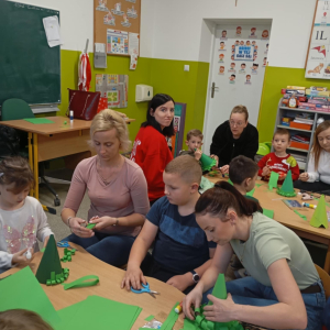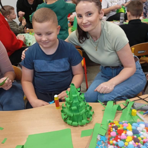 Dziś w naszej szkole odbyły się wyjątkowe warsztaty bożonarodzeniowe, w których udział wzięli rodzice wraz z dziećmi z grup przedszkolnych. Było to piękne spotkanie, pełne uśmiechu, twórczej pracy i świątecznego nastroju. Podczas warsztatów uczestnicy wspólnie wykonywali choinki świąteczne, które następnie stały się wspaniałą ozdobą naszych sal klasowych. Każda praca była niepowtarzalna i odzwierciedlała kreatywność oraz zaangażowanie zarówno dzieci, jak i dorosłych. Celem warsztatów było wzmacnianie więzi rodzinnych oraz budowanie wspólnych, wartościowych wspomnień. Takie inicjatywy dają możliwość spędzenia czasu razem, łącząc dobrą zabawę z rozwijaniem wyobraźni i zdolności manualnych. Czas spędzony podczas warsztatów upłynął w miłej i radosnej atmosferze, a świąteczny klimat towarzyszył nam od pierwszych chwil. Dziękujemy wszystkim uczestnikom za obecność, zaangażowanie i wspólnie stworzoną, magiczną atmosferę zbliżających się Świąt Bożego Narodzenia.