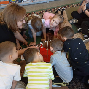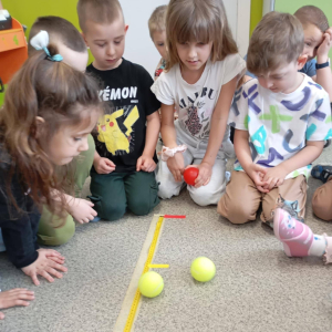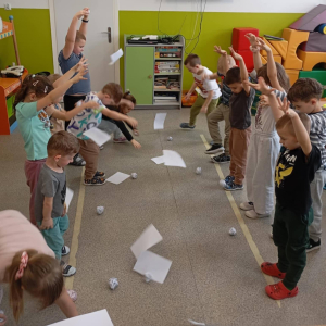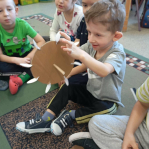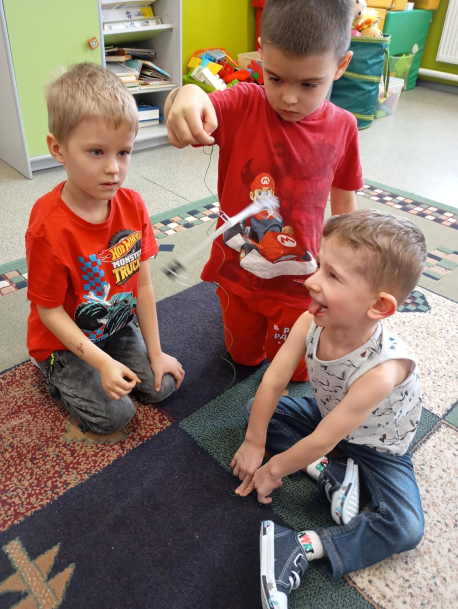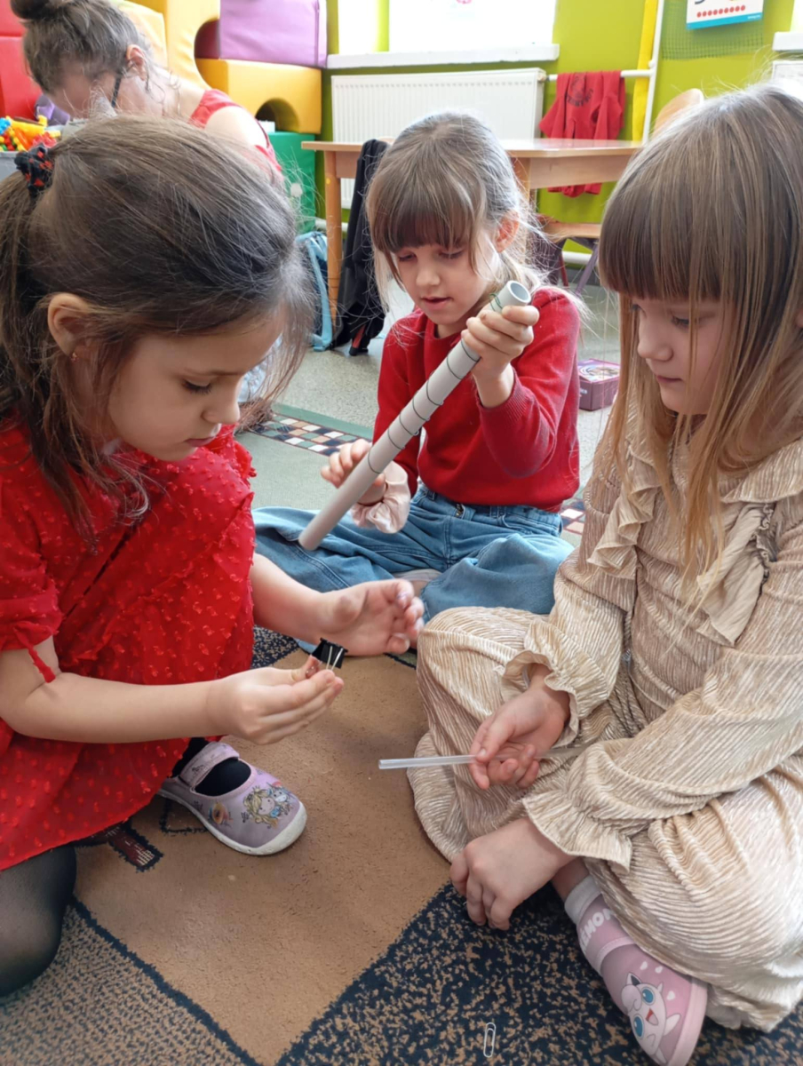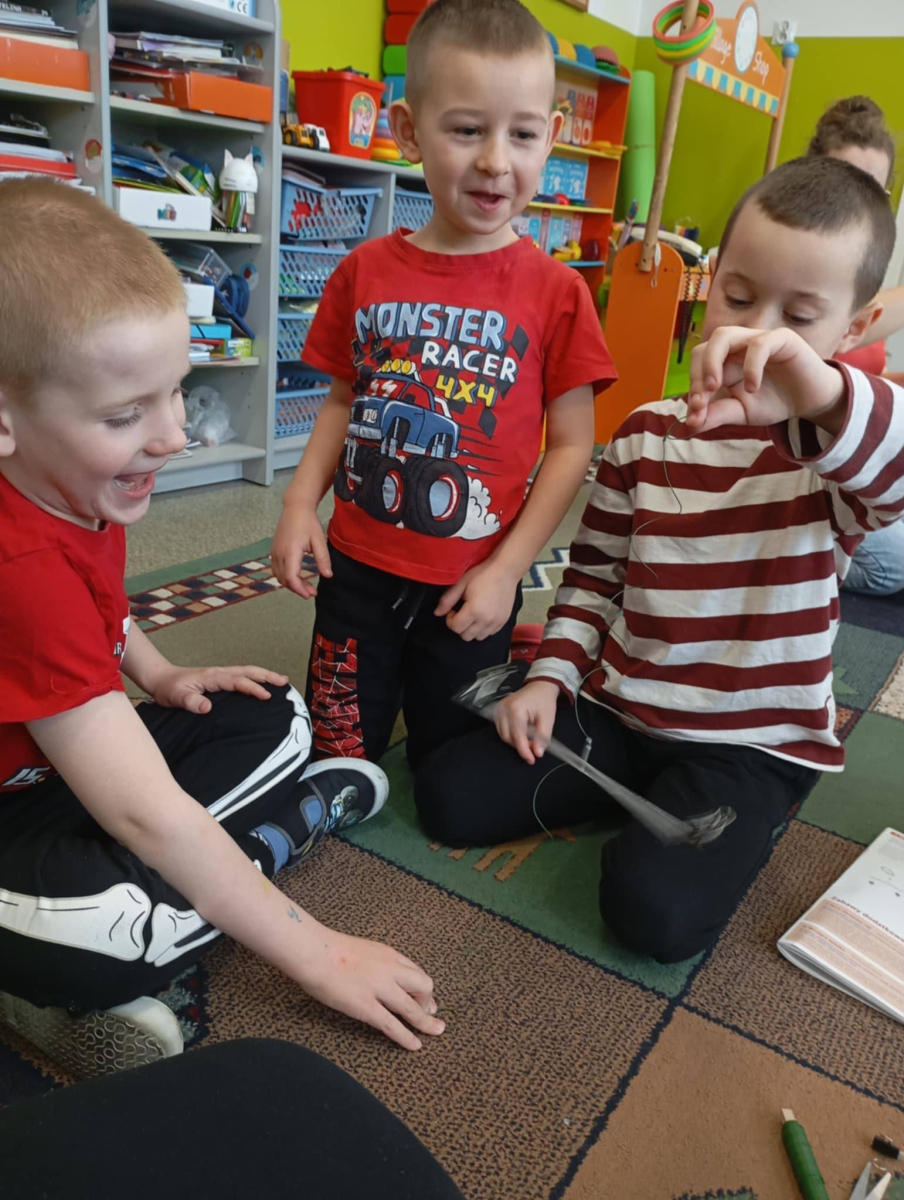 Za nami kolejny, już drugi etap projektu Fundacji ORLEN „Mali Wielcy Odkrywcy”. Tym razem nasi mali odkrywcy wraz z wychowawcą zgłębiali tematykę ruchu. Dzieci budowały tor kulkowy oraz testowały papierowe samoloty, sprawdzając, co wpływa na ich poruszanie się. W kolejnych dniach wykonały spinner grawitacyjny oraz badały zjawisko tarcia, obserwując, jak różne powierzchnie wpływają na ruch przedmiotów. Ostatnie zajęcia poświęcone były energii – dzieci budowały modele elektrowni wiatrowej i wodnej, poznając odnawialne źródła energii w praktyce. Podczas realizacji projektu korzystamy z materiałów zawartych w „pudełku edukacyjnym”, które otrzymaliśmy od Fundacji ORLEN. Dzięki nim zajęcia są jeszcze bardziej atrakcyjne, angażujące i dostosowane do możliwości dzieci. Do odkrywania świata nauki inspiruje dzieci pani Monika, która z zaangażowaniem wprowadza je w kolejne zagadnienia. Przed nami już ostatni, trzeci etap tej edukacyjnej przygody, podczas którego dzieci poznają świat owadów. Dowiedzą się, jak wyglądają cykle życia różnych gatunków oraz dlaczego owady odgrywają tak ważną rolę w ekosystemie. W części praktycznej stworzą poidełko, łąkę kwietną oraz domki dla owadów, ucząc się, w jaki sposób możemy dbać o te małe, ale niezwykle istotne organizmy. Z niecierpliwością czekamy na kolejne odkrycia! #FundacjaOrlen #MaliWielcyOdkrywcy