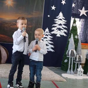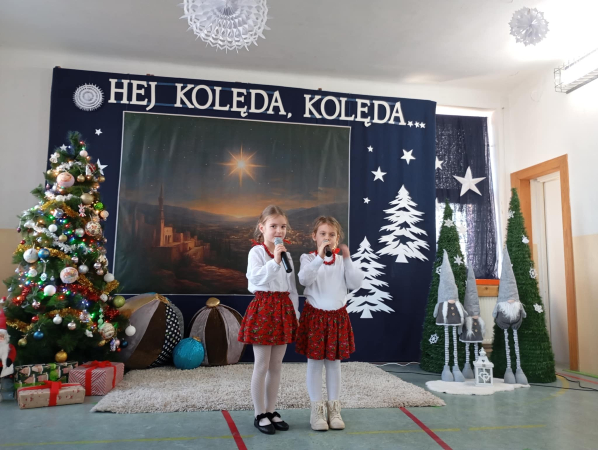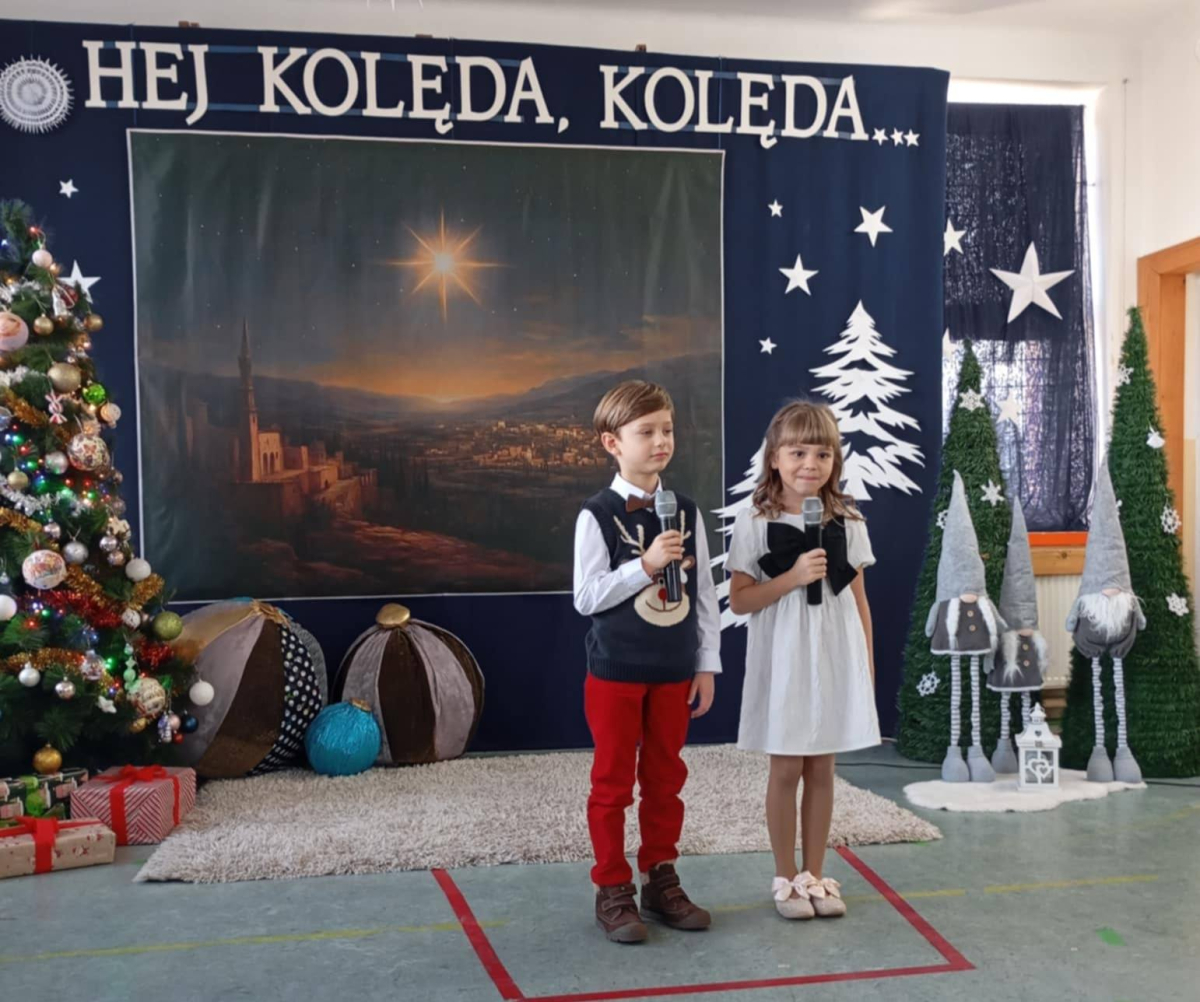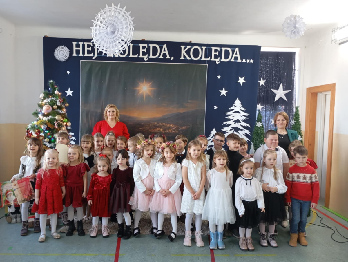 W dniu wczorajszym w naszej szkole odbył się Gminny Przegląd Kolęd i Pastorałek, który od wielu lat stanowi ważną i piękną tradycję naszej placówki. Wydarzenie to wprowadza nas w wyjątkowy świąteczny nastrój.vDo udziału w przeglądzie zaprosiliśmy dzieci z grup przedszkolnych 3-, 4-, 5- i 6-latków ze wszystkich szkół z terenu naszej gminy: Hermanowa, Burca, Siedlisk, Woli Bystrzyckiej, Wólki Domaszewskiej, Wojcieszkowa oraz Oszczepalina. Cieszymy się, że wszyscy odpowiedzieli na nasze zaproszenie. Gościliśmy dziś 28 małych artystów, którzy przybyli wraz z rodzicami i swoimi nauczycielami. Dzieci z wielkim zaangażowaniem i radością zaprezentowały różnorodny repertuar kolęd i pastorałek – zarówno tych najbardziej znanych, jak i mniej popularnych, lecz równie pięknych. Każdy występ był wyjątkowy i spotkał się z ciepłym przyjęciem zgromadzonej publiczności.