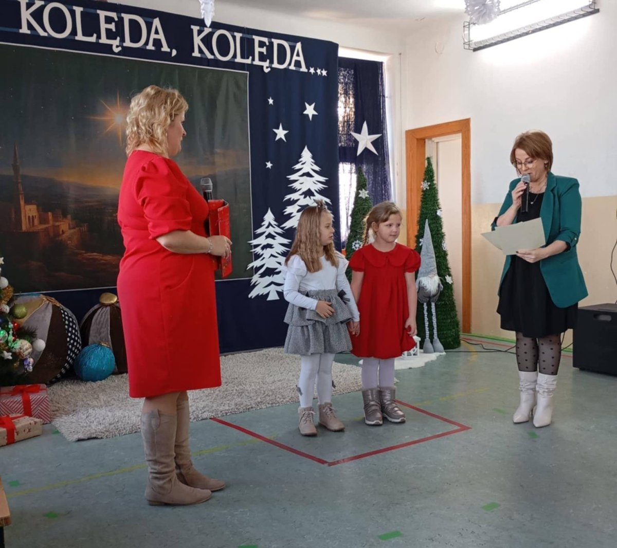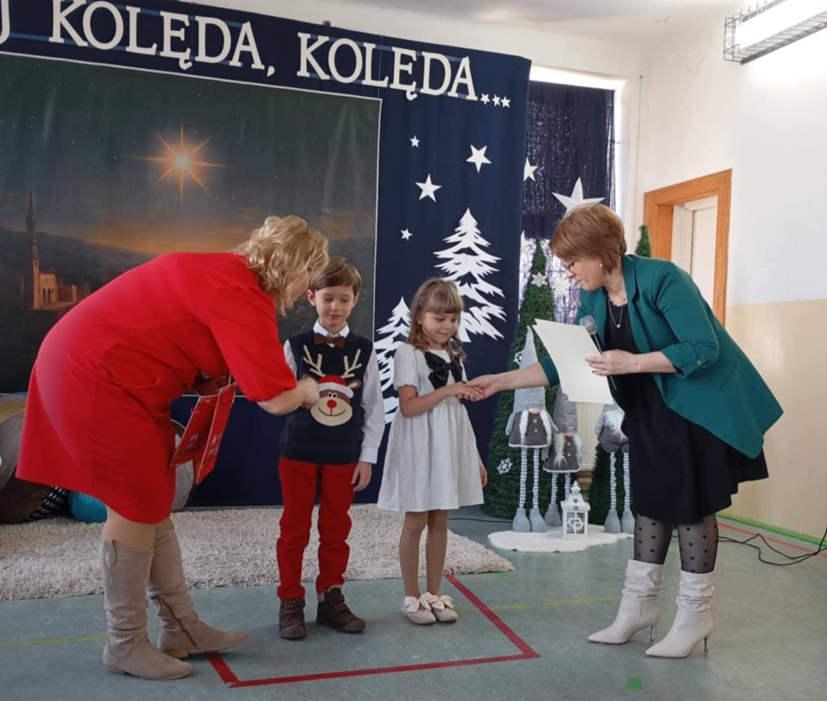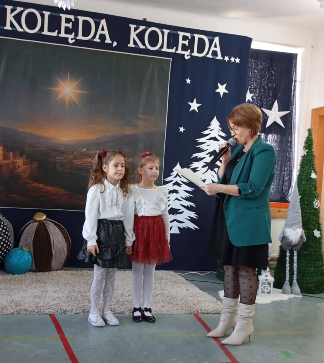 W dniu wczorajszym w naszej szkole odbył się Gminny Przegląd Kolęd i Pastorałek, który od wielu lat stanowi ważną i piękną tradycję naszej placówki. Wydarzenie to wprowadza nas w wyjątkowy świąteczny nastrój.vDo udziału w przeglądzie zaprosiliśmy dzieci z grup przedszkolnych 3-, 4-, 5- i 6-latków ze wszystkich szkół z terenu naszej gminy: Hermanowa, Burca, Siedlisk, Woli Bystrzyckiej, Wólki Domaszewskiej, Wojcieszkowa oraz Oszczepalina. Cieszymy się, że wszyscy odpowiedzieli na nasze zaproszenie. Gościliśmy dziś 28 małych artystów, którzy przybyli wraz z rodzicami i swoimi nauczycielami. Dzieci z wielkim zaangażowaniem i radością zaprezentowały różnorodny repertuar kolęd i pastorałek – zarówno tych najbardziej znanych, jak i mniej popularnych, lecz równie pięknych. Każdy występ był wyjątkowy i spotkał się z ciepłym przyjęciem zgromadzonej publiczności.