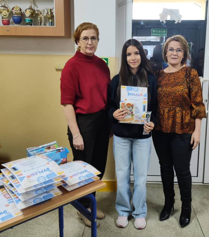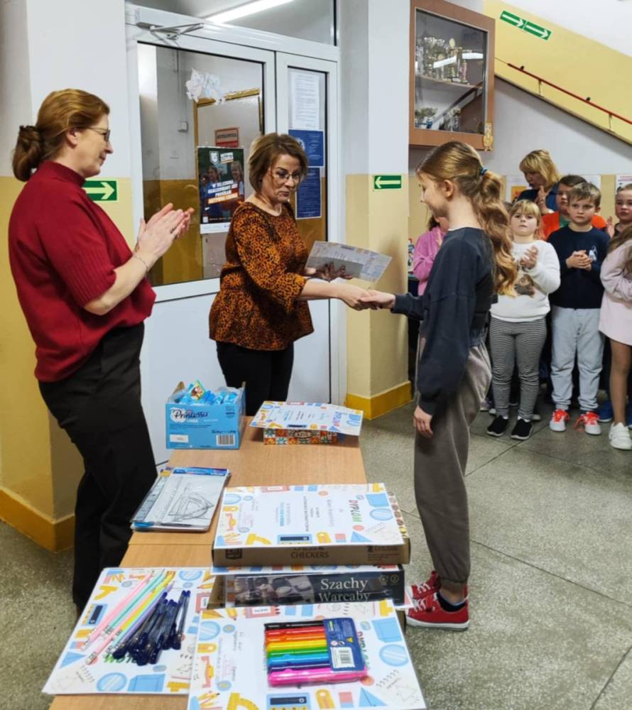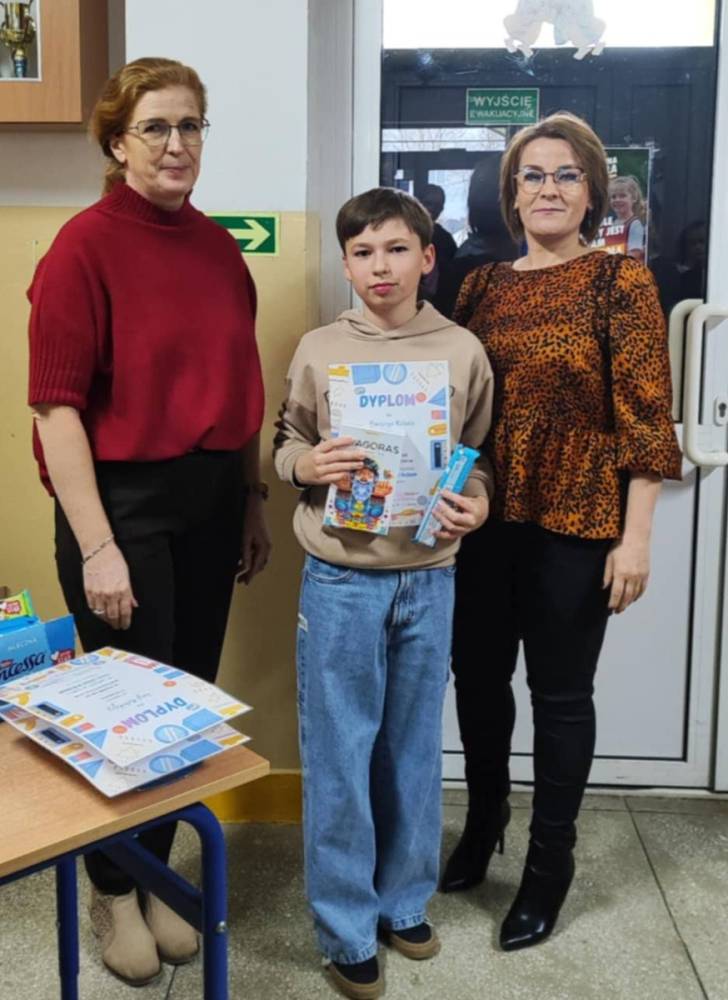 Konkurs został przygotowany i przeprowadzony przez panie: Annę i Małgorzatę, którym serdecznie dziękujemy za zaangażowanie, poświęcony czas oraz dbałość o sprawny przebieg wydarzenia. W dniu dzisiejszym odbyło się podsumowanie konkursu. Wszyscy uczestnicy otrzymali pamiątkowe dyplomy, nagrody rzeczowe oraz słodkie upominki. Nagrody zostały sfinansowane w ramach realizacji projektu Fundacji mBanku – mSilnia. Gratulujemy wszystkim uczniom udziału w matematycznych zmaganiach i życzymy dalszych sukcesów!