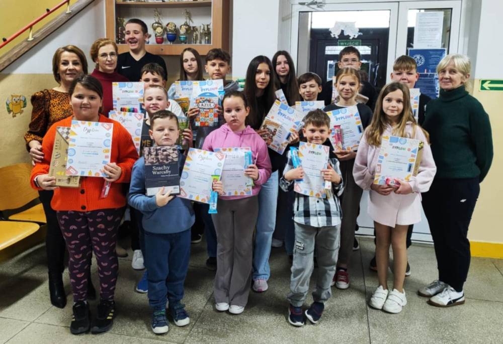 21 listopada w naszej szkole odbył się Konkurs Wiedzy Matematycznej, zorganizowany w ramach projektu „Nasza szkoła w liczbach”. Do rywalizacji przystąpiło aż 29 uczniów, co niezwykle nas cieszy – tak duża frekwencja pokazuje, że matematyka może być fascynującą przygodą! Konkurs odbył się w czterech kategoriach wiekowych: klasy I–II, III-IV , V–VI, VII–VIII. Uczniowie zmagali się z zadaniami sprawdzającymi ich ogólną wiedzę matematyczną, umiejętność logicznego myślenia, a także zdolność stosowania matematyki w praktyce. Zróżnicowane zadania pozwoliły wyłonić prawdziwych pasjonatów królowej nauk. Po intensywnych zmaganiach tytuły laureatów w poszczególnych kategoriach zdobyli: