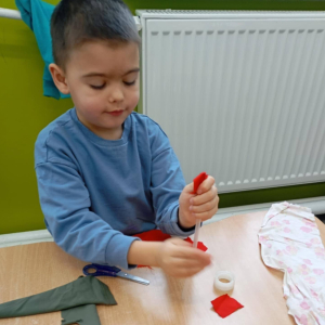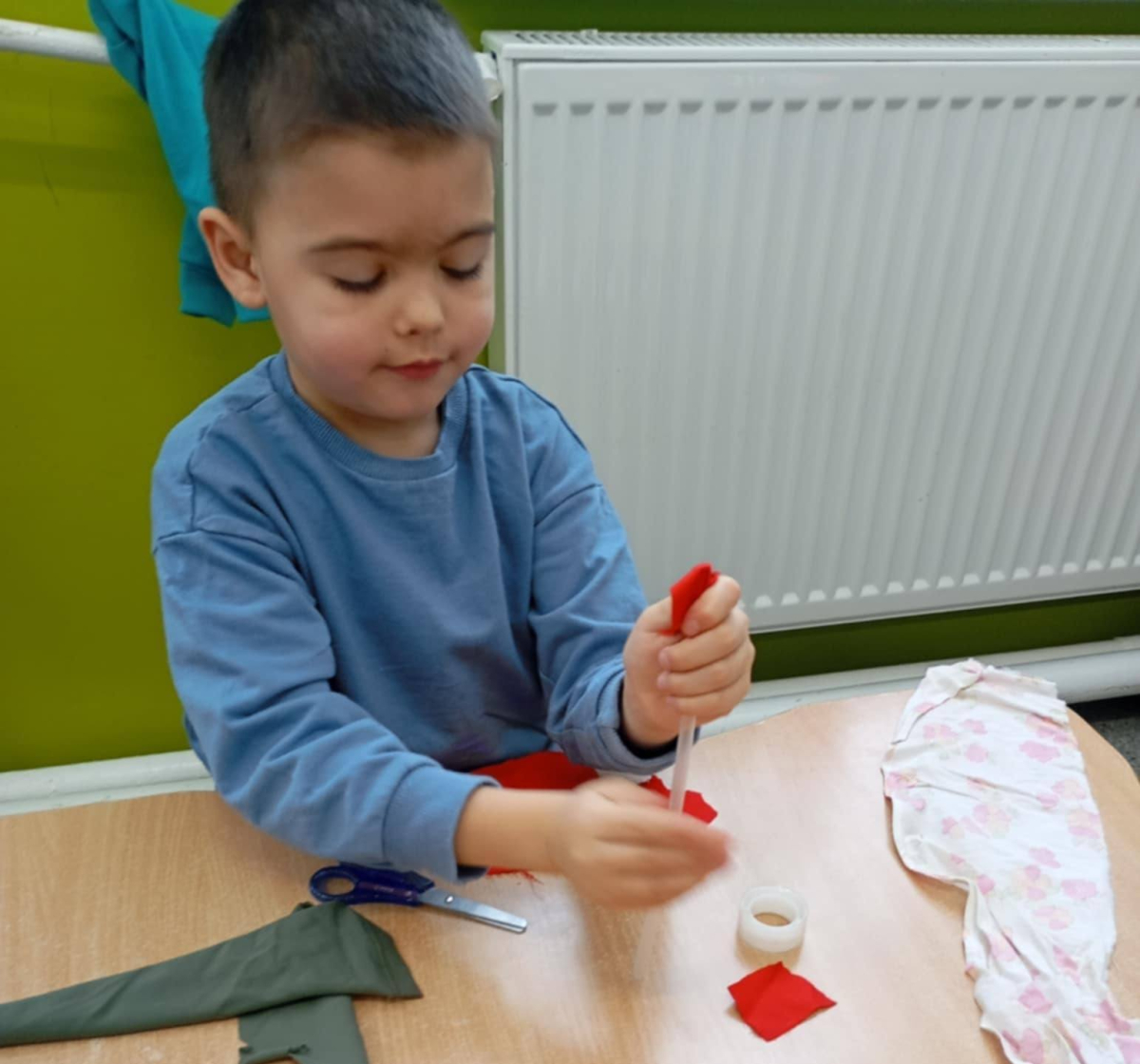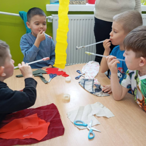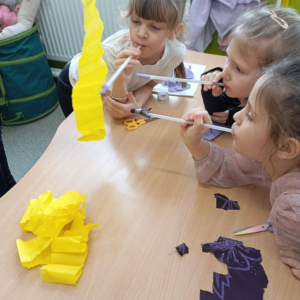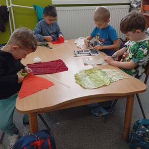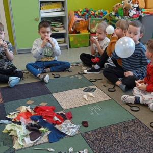- badały różnorodne materiały dotykiem i wzrokiem, rozwijając swoją percepcję i obserwację,