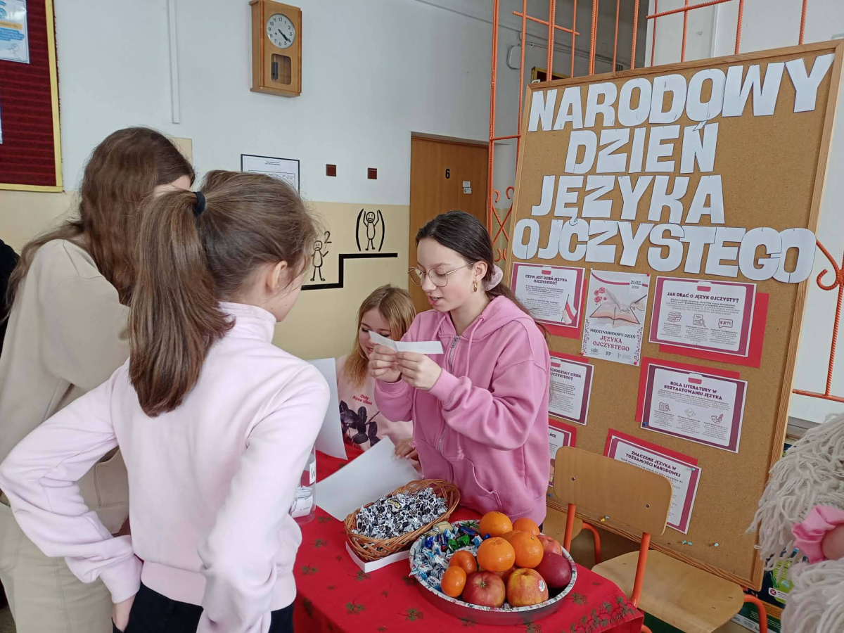 We wtorek obchodziliśmy Międzynarodowy Dzień Języka Ojczystego – święto ustanowione w 1999 roku, którego celem jest promowanie dbałości o język ojczysty oraz podkreślanie roli języka w budowaniu tożsamości narodowej. W ramach święta w szkole odbyły się liczne konkursy i aktywności. Uczniowie wzięli udział m.in. w loterii językowej, turnieju „Mistrz Ortografii”, sprawdzali znajomość polskich przysłów, ćwiczyli piękne i poprawne wysławianie się, a także tworzyli plakat poświęcony najpiękniejszym polskim słowom. Wszystkie zadania cieszyły się dużym zainteresowaniem i zaangażowaniem ze strony dzieci, które wykazały się bogatą wiedzą językową. Konkursy były doskonałą okazją do nauki poprzez zabawę. Organizatorki zadbały również o miłe niespodzianki dla wszystkich uczestników. Nad całością projektu czuwały nauczycielki języka polskiego – pani Aneta oraz pani Małgosia, którym serdecznie dziękujemy za pomysłowość, zaangażowanie i przygotowanie tego wyjątkowego dnia. Obchody Międzynarodowego Dnia Języka Ojczystego przypomniały nam, że język polski jest naszym wspólnym dobrem, o które warto dbać każdego dnia. Dbając o język chronimy kulturę i tożsamość narodową. Rozstrzygnięcie konkursu nastąpi wkrótce.