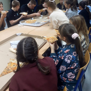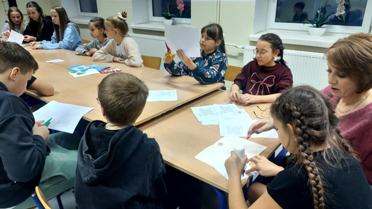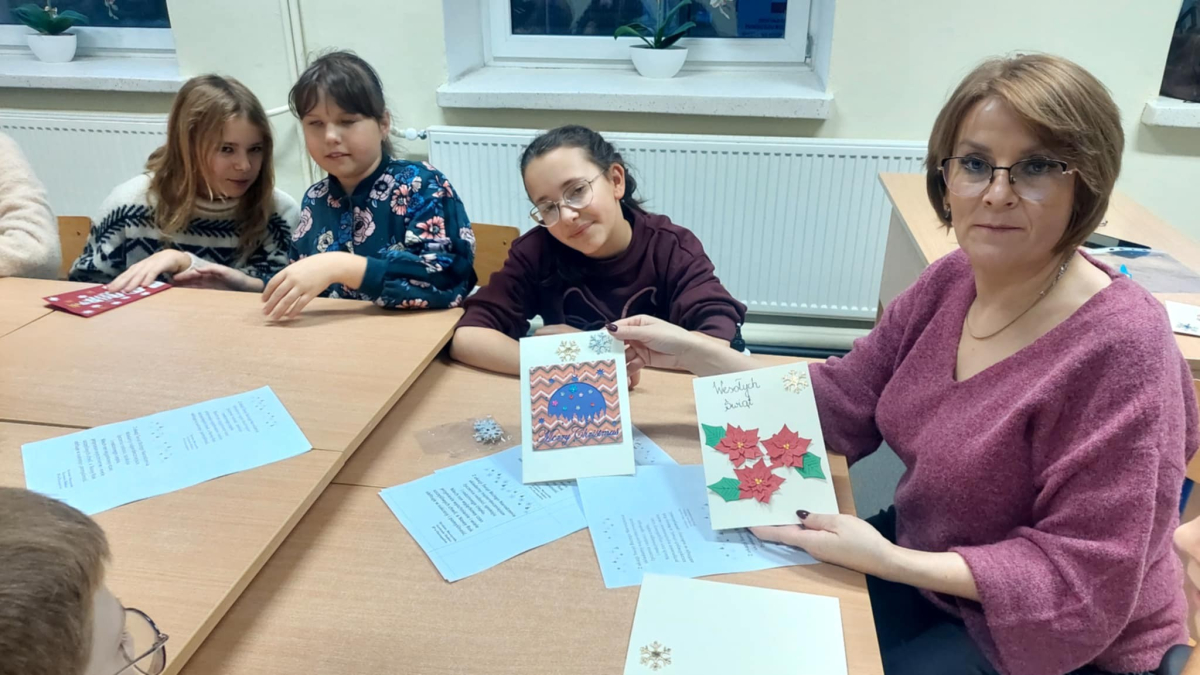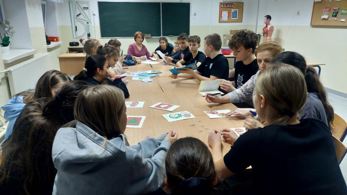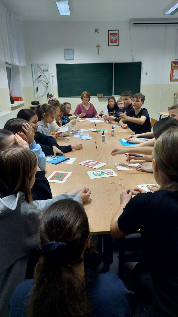 5 grudnia, obchodzimy Międzynarodowy Dzień Wolontariusza. Z tej okazji członkowie Szkolnego Koła Wolontariatu wraz z opiekunami spotkali się na popołudniowym, wspólnym świętowaniu. Pierwszym punktem naszego spotkania było przygotowywanie przez wolontariuszy świątecznych kartek z życzeniami. Własnoręcznie wykonane kartki trafią do naszych emerytowanych pracowników, Przyjaciół szkoły oraz instytucji wspierających nas w codziennej działalności. To piękny gest wdzięczności, który już kolejny rok jest jednym z ważnych elementów pracy naszych wolontariuszy. Po twórczej pracy uczniowie spędzili miło czas przy pizzy, a następnie udali się na seans filmowy. Oglądaliśmy film pt. Listy do Mikołaja 2 – pełen emocji, wzruszeń i humoru. Oczywiście nie mogło zabraknąć popcornu i innych przekąsek, które dodatkowo umiliły wspólny wieczór. Takie spotkania są wspaniałą okazją, by podziękować naszym wolontariuszom za ich całoroczną pracę na rzecz innych, za ich otwarte serca, zaangażowanie i gotowość do działania. To również niezwykle ważny czas integracji i budowania wspólnoty. Składamy serdeczne podziękowania opiekunkom Koła – pani Basi i pani Małgosi – za ich nieustanną pracę, poświęcony czas oraz tworzenie przestrzeni, w której młodzież może rozwijać swoje pasje i realizować działania wolontariackie. Dziękujemy wszystkim za obecność i piękne świętowanie Międzynarodowego Dnia Wolontariusza!