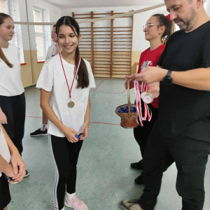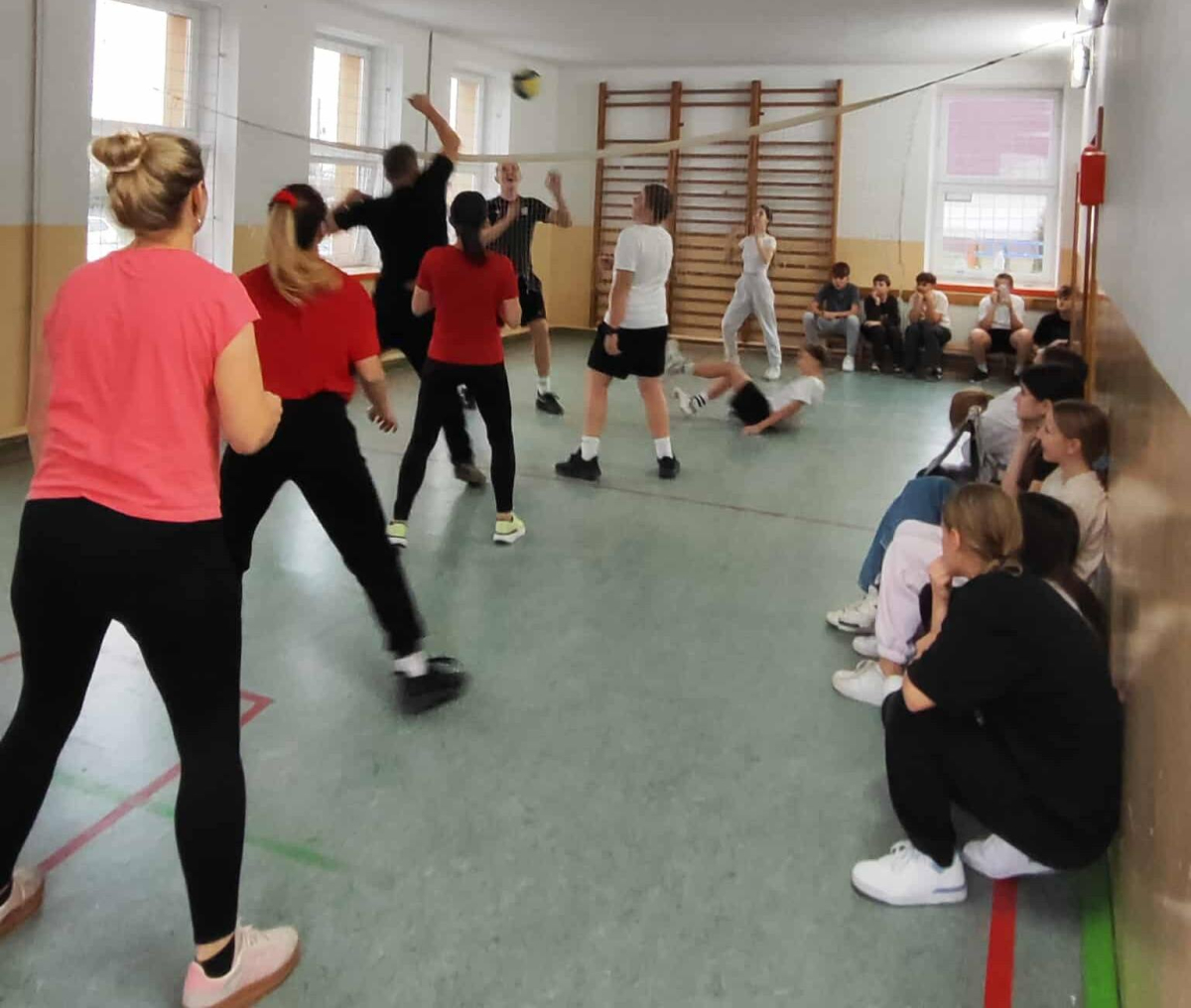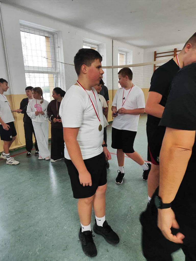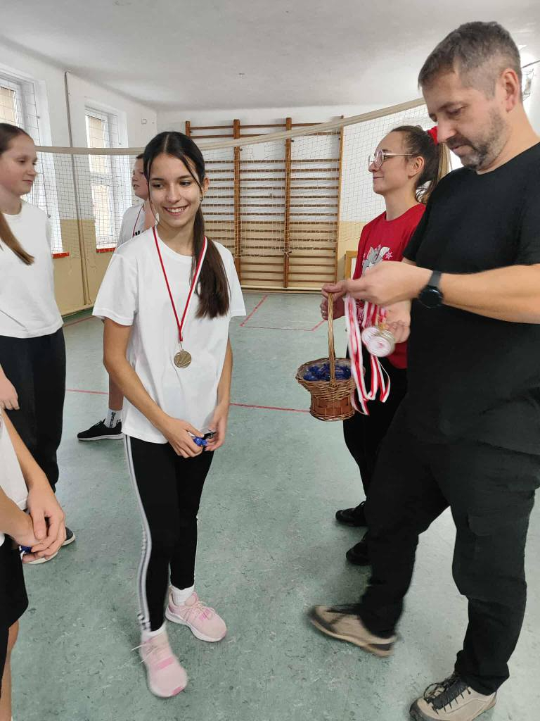 Starszym uczniom również nie zabrakło atrakcji. Wzięli oni udział w Mikołajkowym turnieju piłki siatkowej, który dostarczył wielu emocji, zdrowej rywalizacji i świetnej zabawy. Drużyny walczyły z dużym zaangażowaniem, a sportowa atmosfera i duch fair play towarzyszyły wszystkim uczestnikom. Po zaciętych rozgrywkach miejsce I zajęła klasa VIII, miejsce II klasa VII, a miejsce III - klasa VI. Na koniec turnieju wygrana drużyna (klasa VII) zagrała z drużyną nauczycieli. Mecz skończył się wygraną uczniów, którym serdecznie gratulujemy.