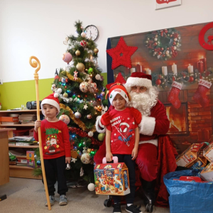 Wczorajszy dzień upłynął w naszej szkole pod znakiem Mikołajek. Już od rana na korytarzach panowała wyjątkowa atmosfera, a uśmiechy na twarzach uczniów zdradzały, że wszyscy z niecierpliwością czekają na wyjątkowego gościa. Do szkoły zawitał sam Święty Mikołaj, który obdarował dzieci upominkami.