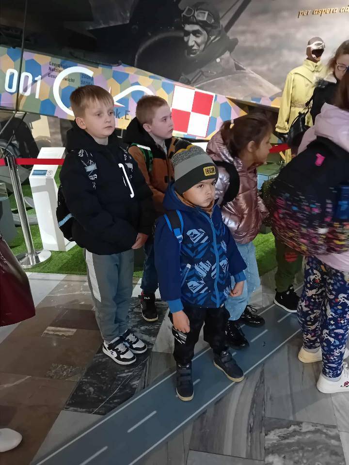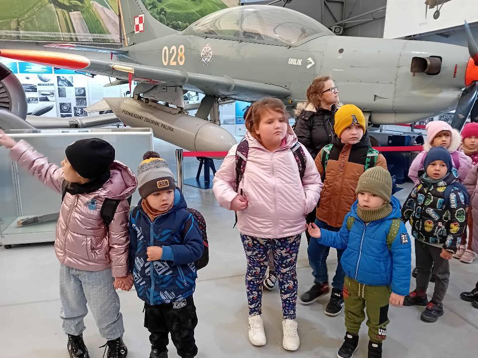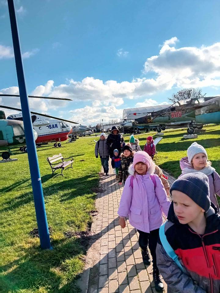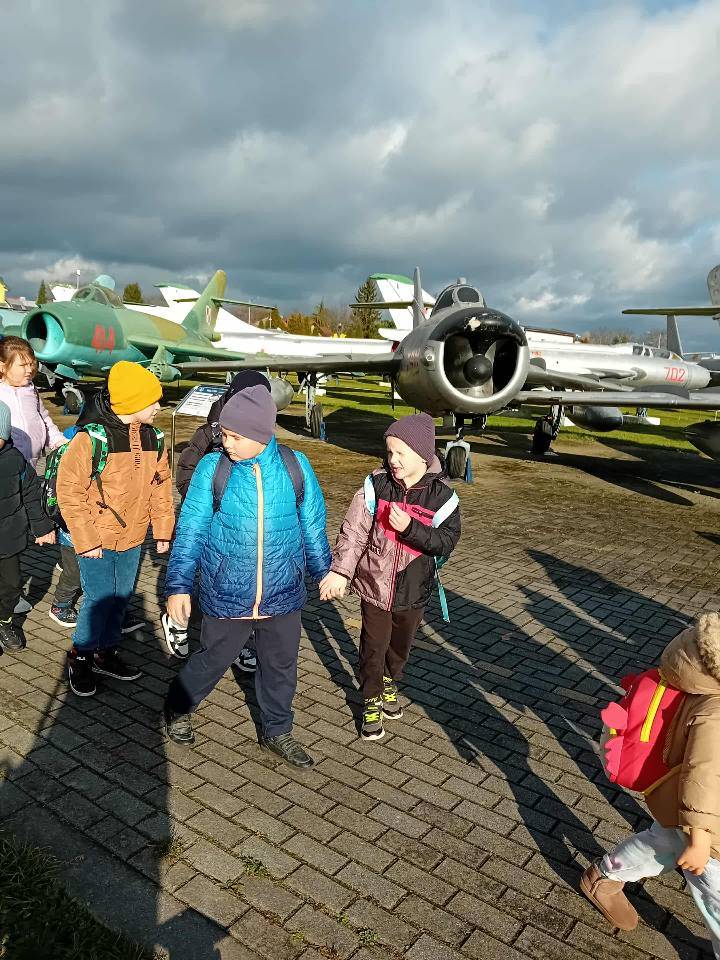 Największe emocje wzbudziła ekspozycja plenerowa, gdzie można było zobaczyć z bliska prawdziwe samoloty i śmigłowce. Mali odkrywcy z podziwem oglądali ogromne maszyny latające. Wycieczka była ciekawą lekcją historii i patriotyzmu.