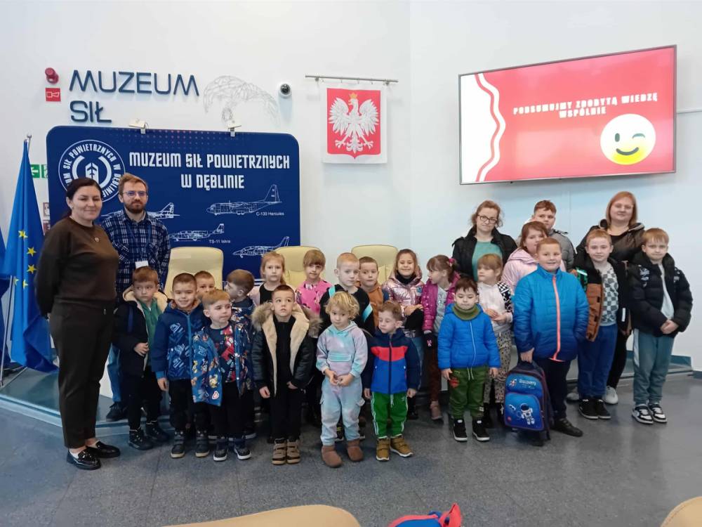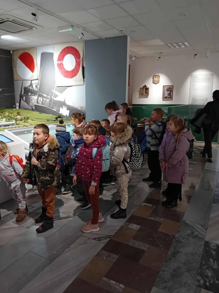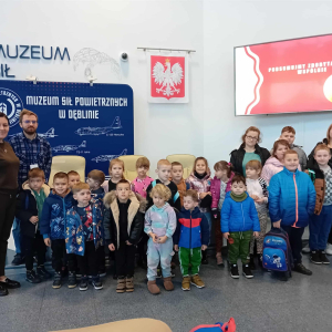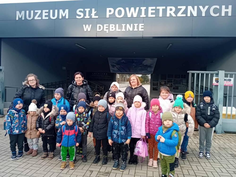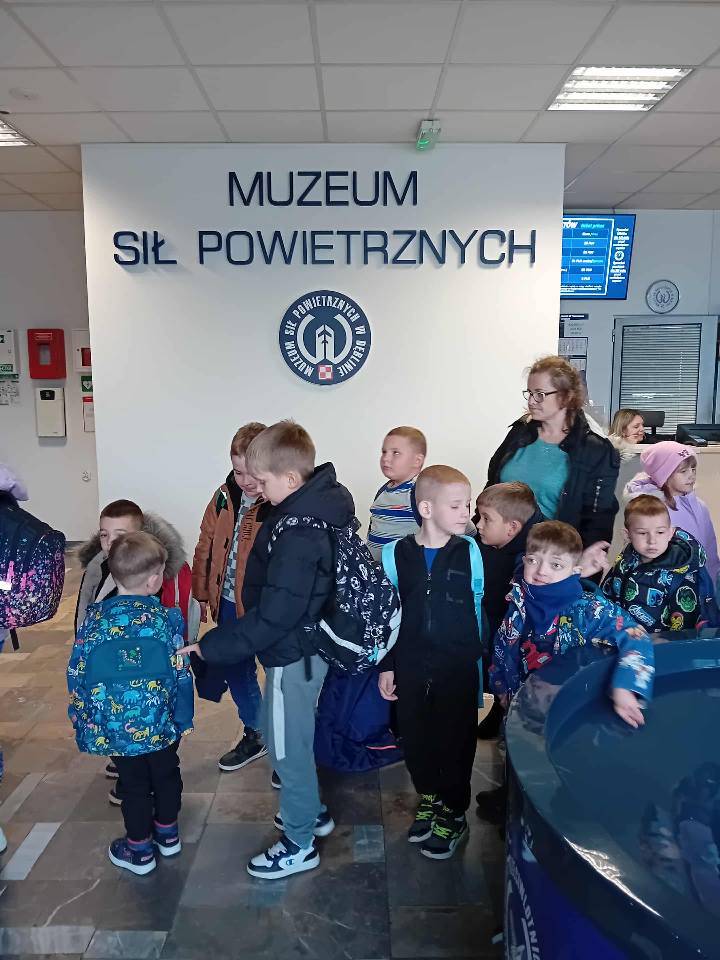 W dniu dzisiejszym dzieci z oddziałów przedszkolnych oraz klas II–III wraz z wychowawcami wybrali się na wycieczkę do Muzeum Sił Powietrznych w Dęblinie. Był to dzień pełen nowych doświadczeń, ciekawostek i niezapomnianych wrażeń. W trakcie pobytu dzieci uczestniczyły w muzealnej lekcji pt. „Polskie Symbole Narodowe”, podczas której poznały najważniejsze elementy symboliki narodowej. Zajęcia miały formę krótkiej prelekcji połączonej z prezentacją multimedialną, dzięki czemu treści były przystępne i atrakcyjne dla najmłodszych.