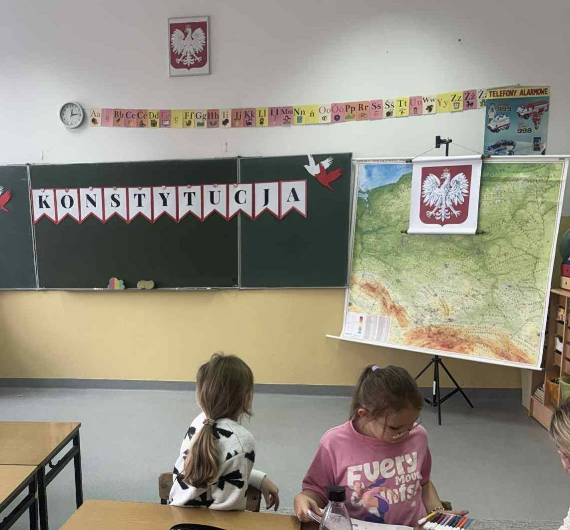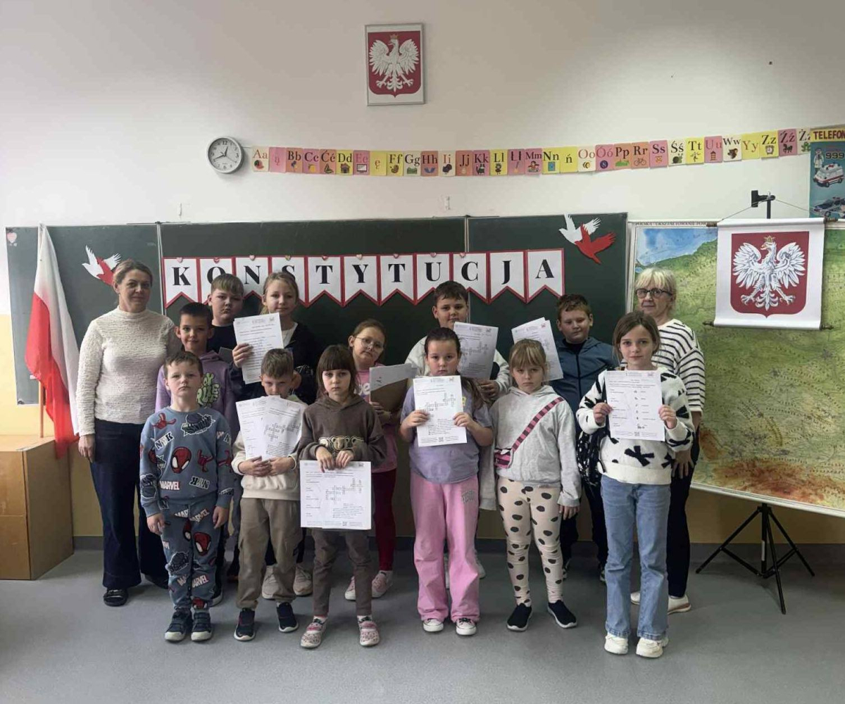 Uczniowie klas 1 i 3 uczestniczyli w zajęciach poświęconych Konstytucji Rzeczypospolitej Polskiej. Podczas lekcji dzieci poznały pojęcie Konstytucji jako najważniejszej księgi zasad w Polsce, dowiedziały się, jakie prawa i obowiązki mają obywatele, a także utrwaliły wiedzę o symbolach narodowych, rodzinie, bezpieczeństwie, zdrowiu i demokracji. Zajęcia uatrakcyjniła prezentacja multimedialna oraz karty pracy przygotowane dla uczniów. Na zakończenie dzieci zostały zaproszone do udziału w konkursie plastycznym inspirowanym tematyką Konstytucji. Uczniowie będą mieli okazję ,, pokazać Konstytucję swoimi oczami ". Projekt dofinansowany ze środków budżetu państwa przyznawanych przez Ministra Edukacji w ramach programu Młodzi obywatele.