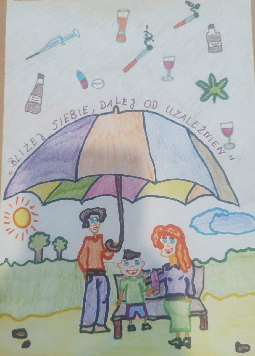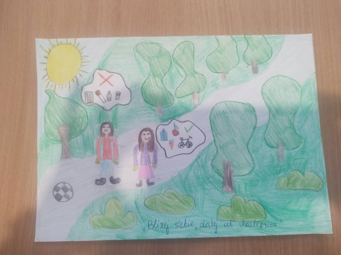 Serdecznie dziękujemy uczniom oraz ich rodzicom za aktywne włączenie się w te niezwykle ważne działania profilaktyczne. Taka współpraca jest nieoceniona i pokazuje, jak istotną rolę w profilaktyce uzależnień odgrywa rodzina. Dzięki wspólnemu zaangażowaniu możemy skuteczniej chronić dzieci i młodzież przed zagrożeniami współczesnego świata.Wszystkim uczestnikom konkursu składamy serdeczne gratulacje. W realizacji zadań profilaktycznych naszą szkołę wspiera Gminna Komisja Rozwiązywania Problemów Alkoholowych i Przeciwdziałania Narkomanii w Wojcieszkowie. Dziękujemy