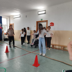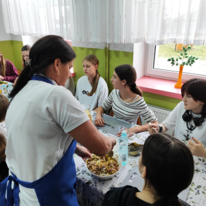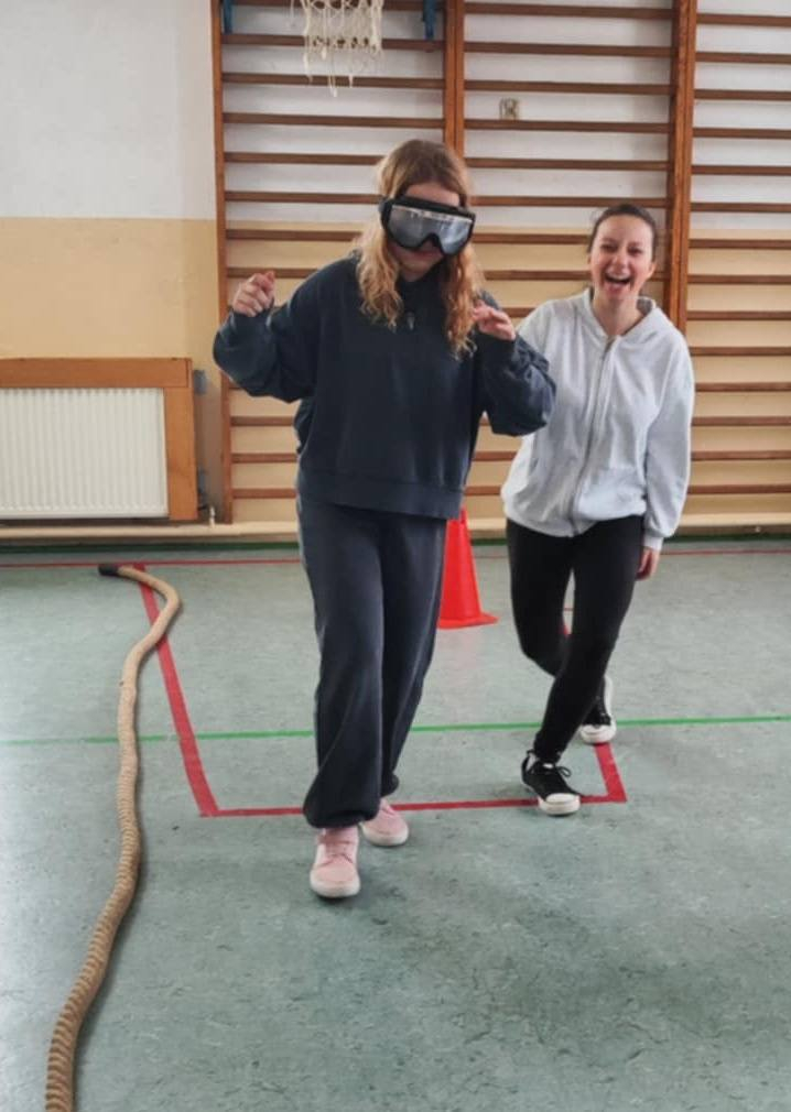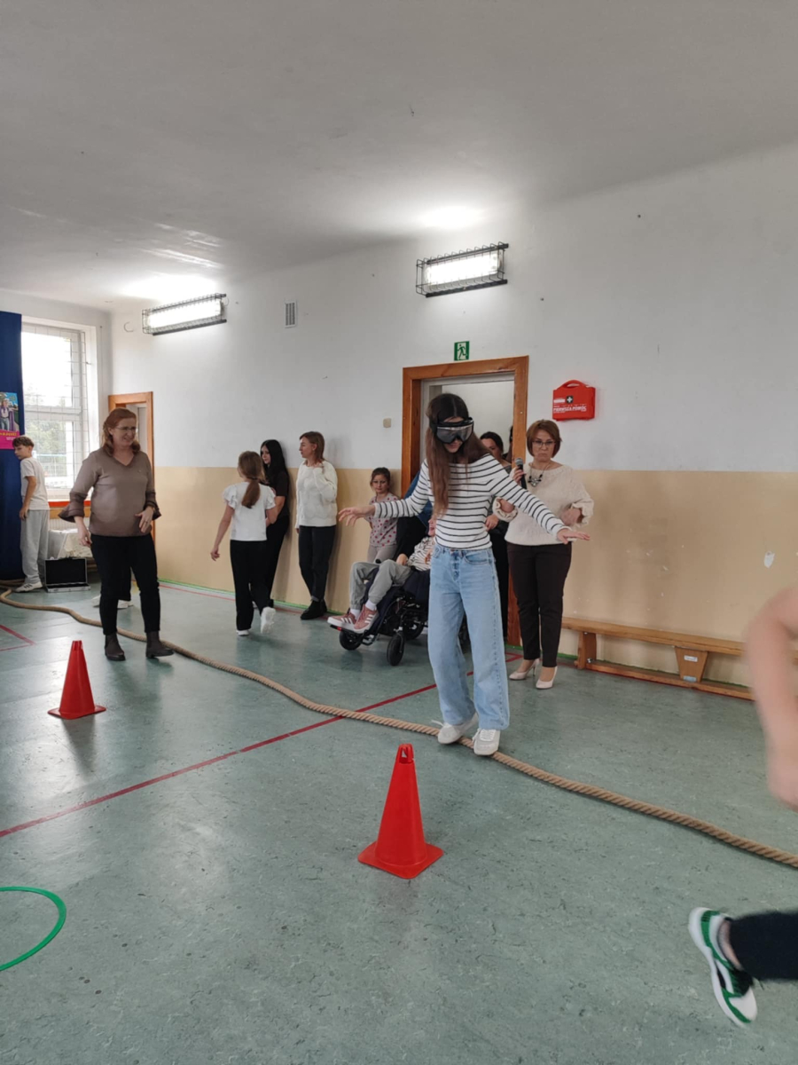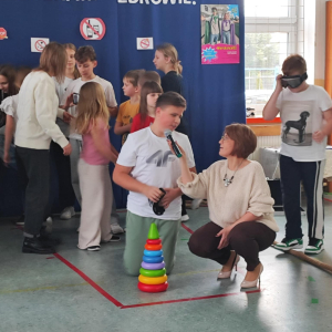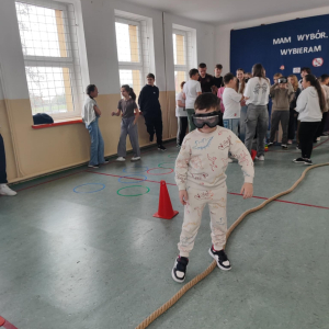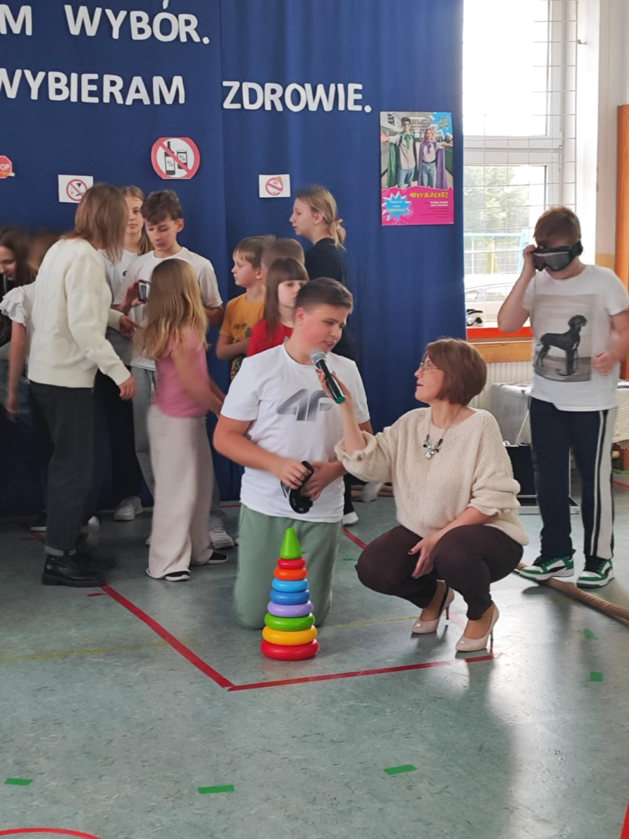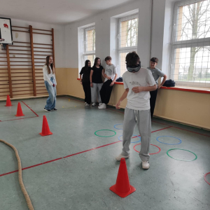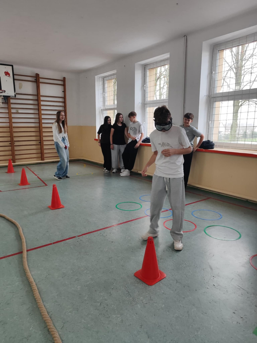 której celem była aktywizacja i wzmocnienie współpracy w grupie. Następnie odbyła się część teoretyczna, podczas której młodzież zdobywała wiedzę na temat szkodliwości palenia papierosów, spożywania alkoholu oraz napojów energetycznych. Wspólnie obejrzeliśmy filmy profilaktyczne, a uczniowie pracowali z Kartami pracy, utrwalając zdobytą wiedzę. Przygotowaliśmy również dla nich ulotki profilaktyczne dotyczące negatywnych skutków palenia i picia alkoholu. Ważnym punktem spotkania były warsztaty z wykorzystaniem alkogogli i narkogogli, dzięki którym uczniowie mogli w bezpieczny sposób, doświadczyć”, jak substancje psychoaktywne zaburzają funkcjonowanie człowieka, wpływając na koordynację, koncentrację i percepcję. Ostatnia część zajęć miała charakter kulinarny i prozdrowotny. Panie z Koła Gospodyń Wiejskich „Jagódki” w Oszczepalinie Pierwszym poprowadziły