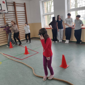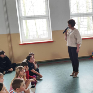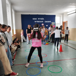 W dniu dzisiejszym odbyło się kolejne spotkanie profilaktyczne z uczniami naszej szkoły, realizowane w ramach szkolnego programu profilaktyki uzależnień „Mam wybór. Wybieram zdrowie.”Pierwsza część zajęć miała charakter sportowy – uczniowie uczestniczyli w ćwiczeniach rozciągających oraz w integracyjnej zabawie ruchowej,