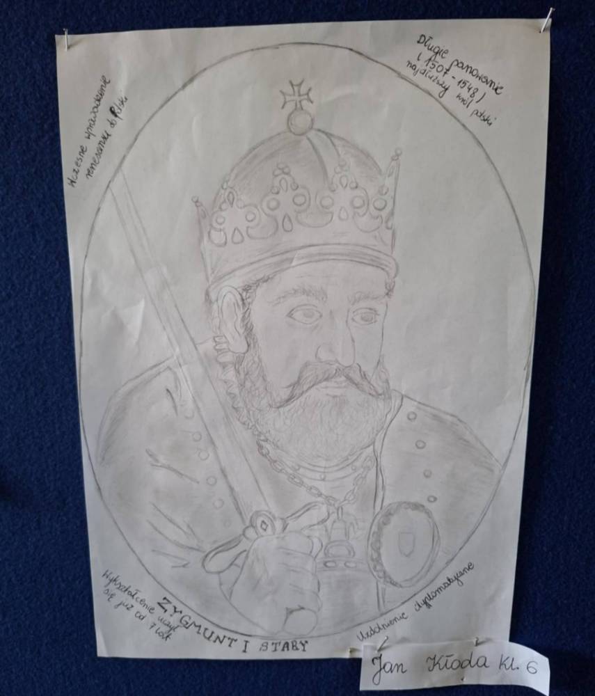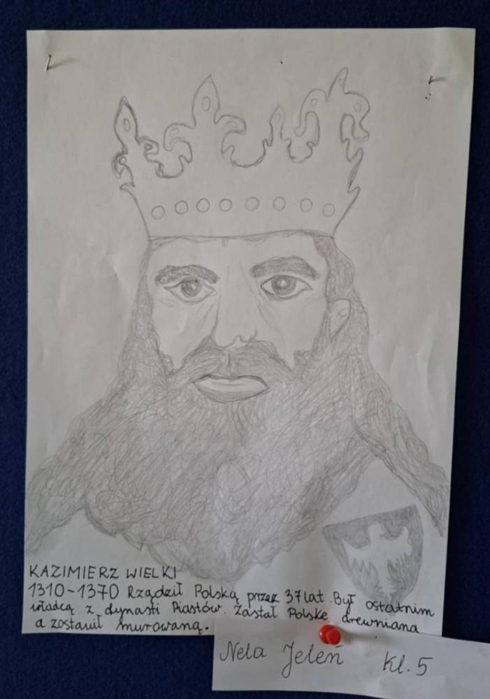 Z okazji kolejnej rocznicy odzyskania przez Polskę niepodległości zaprosiliśmy uczniów klas IV–VIII do udziału w szkolnym konkursie plastycznym pt. „Barwy historii – Królowie Polski”. Zadaniem uczestników było przygotowanie portretu wybranego władcy, którego panowanie miało szczególne znaczenie dla rozwoju naszego kraju. W konkursie wzięło udział 11 uczniów, którzy wykazali się kreatywnością, wiedzą historyczną oraz talentem artystycznym. Połączenie wiedzy historycznej z pasją do sztuki przyniosło efekty w postaci pięknych i inspirujących rysunków.