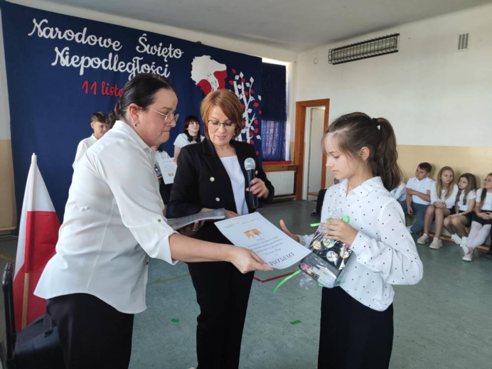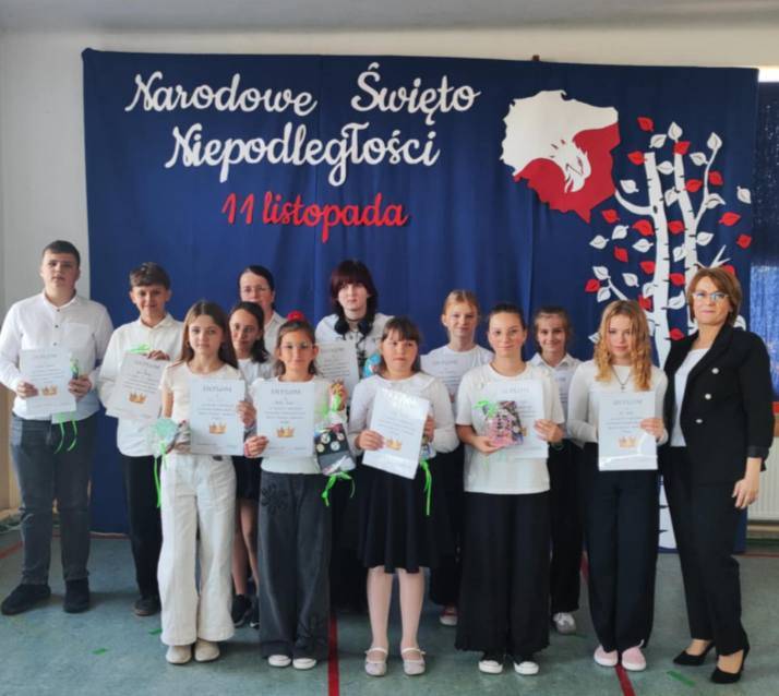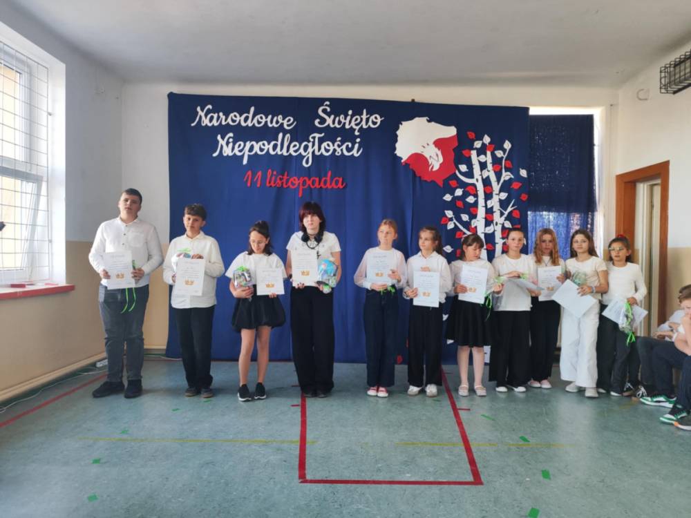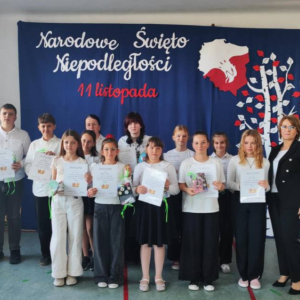 Wszyscy uczestnicy otrzymali pamiątkowe dyplomy oraz upominki rzeczowe. Pomysłodawcą i organizatorem konkursu była pani Aneta, nauczycielka historii, której serdecznie dziękujemy za promowanie postaw patriotycznych wśród uczniów. Serdecznie gratulujemy wszystkim uczestnikom.