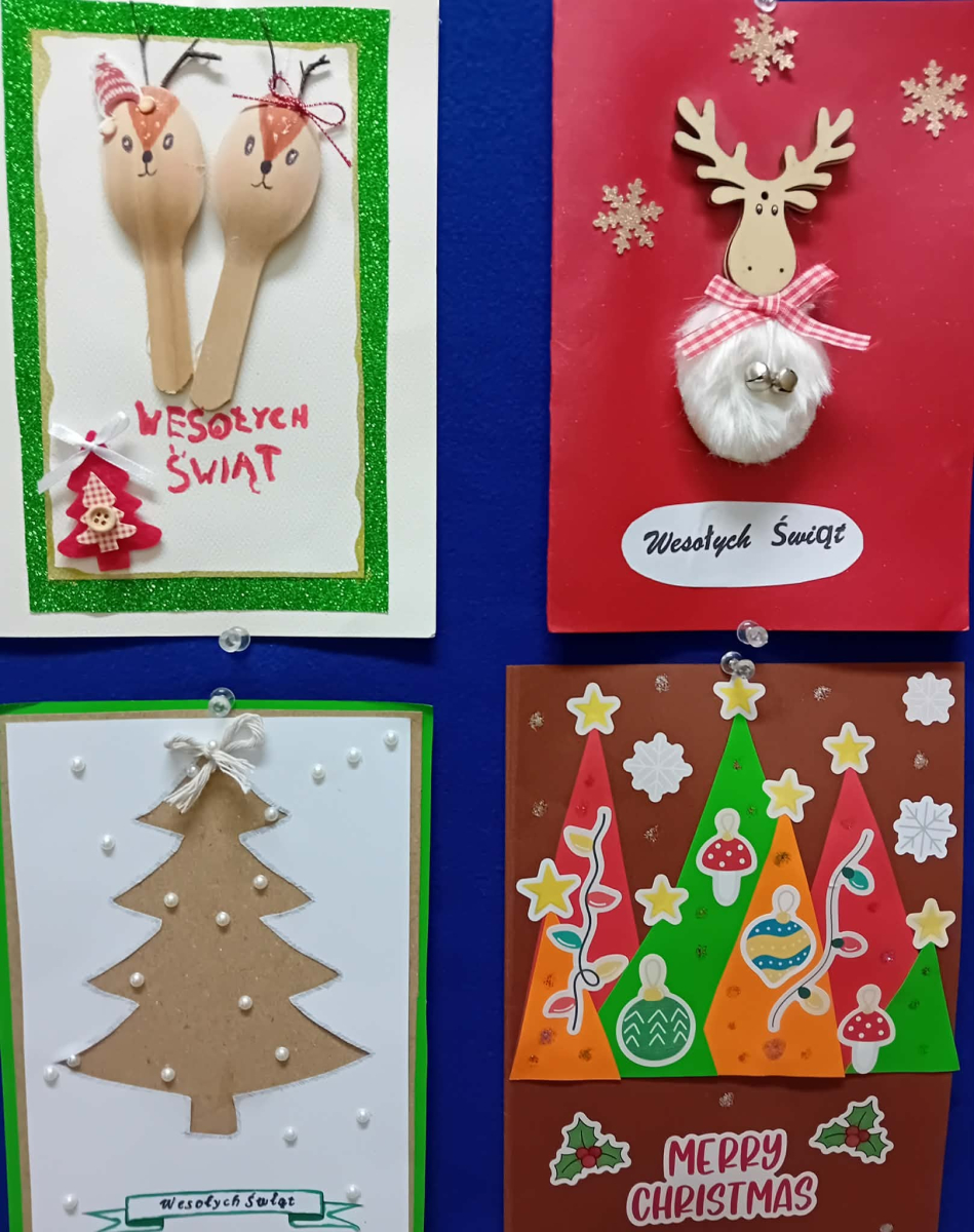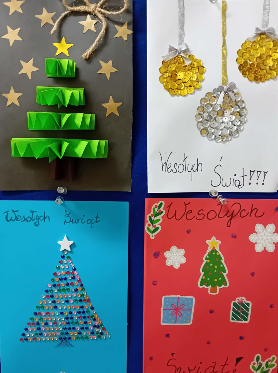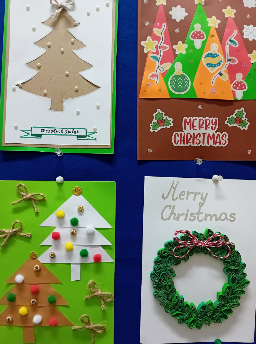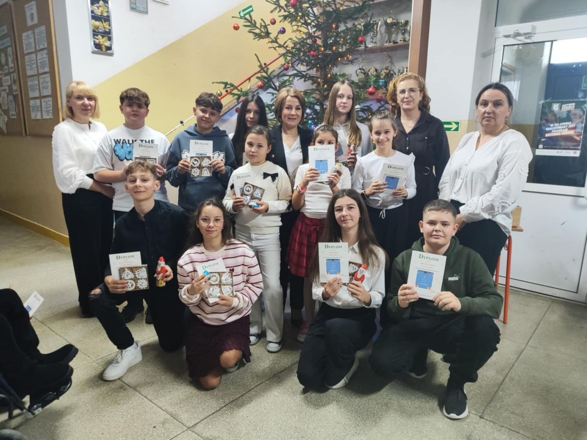W piątek, w naszej szkole odbyło się uroczyste wręczenie dyplomów oraz drobnych upominków uczestnikom konkursu na kartkę bożonarodzeniową. Konkurs cieszył się bardzo dużym zainteresowaniem zarówno wśród najmłodszych, jak i starszych uczniów naszej szkoły. Łącznie przygotowano 40 pięknych, różnorodnych prac, które zachwycały pomysłowością, starannością wykonania oraz świątecznym klimatem. Każda kartka była wyrazem wrażliwości, kreatywności i radości płynącej z nadchodzących Świąt Bożego Narodzenia. Serdecznie gratulujemy wszystkim uczestnikom konkursu – każda praca była wyjątkowa i zasługuje na uznanie. Dziękujemy uczniom za ogromne zaangażowanie i serce włożone w wykonanie kartek. Wyrazy wdzięczności kierujemy także do organizatorów konkursu – Szkolnego Koła Wolontariatu oraz nauczyciela religii - pani Marzanny Kożuch, za pomysł i stworzenie przestrzeni do rozwijania talentów naszych uczniów.