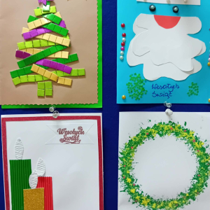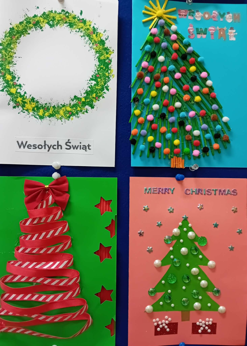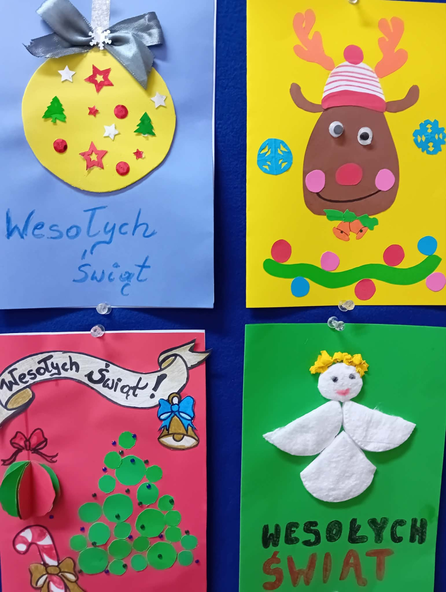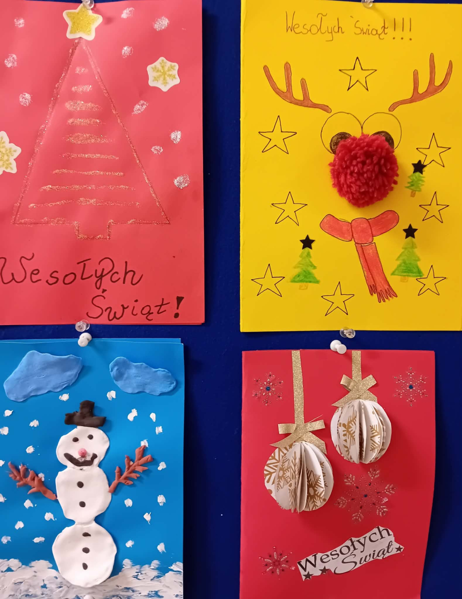 W piątek, w naszej szkole odbyło się uroczyste wręczenie dyplomów oraz drobnych upominków uczestnikom konkursu na kartkę bożonarodzeniową. Konkurs cieszył się bardzo dużym zainteresowaniem zarówno wśród najmłodszych, jak i starszych uczniów naszej szkoły. Łącznie przygotowano 40 pięknych, różnorodnych prac, które zachwycały pomysłowością, starannością wykonania oraz świątecznym klimatem. Każda kartka była wyrazem wrażliwości, kreatywności i radości płynącej z nadchodzących Świąt Bożego Narodzenia. Serdecznie gratulujemy wszystkim uczestnikom konkursu – każda praca była wyjątkowa i zasługuje na uznanie. Dziękujemy uczniom za ogromne zaangażowanie i serce włożone w wykonanie kartek. Wyrazy wdzięczności kierujemy także do organizatorów konkursu – Szkolnego Koła Wolontariatu oraz nauczyciela religii - pani Marzanny Kożuch, za pomysł i stworzenie przestrzeni do rozwijania talentów naszych uczniów.