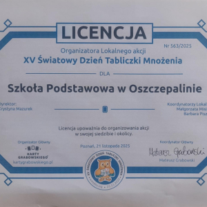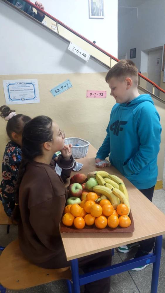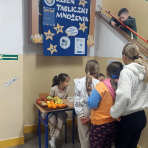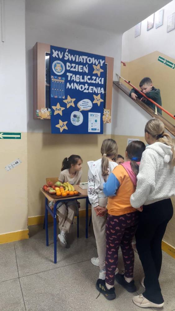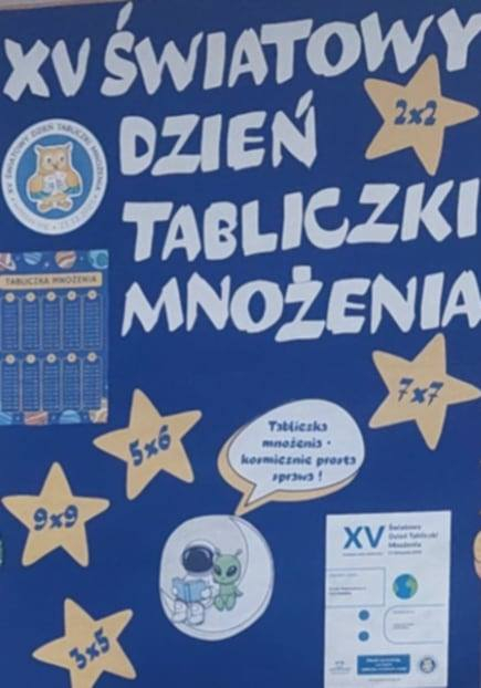 Wczoraj w naszej szkole obchodziliśmy XV Światowy Dzień Tabliczki Mnożenia. Jego celem było promowanie tabliczki mnożenia w sposób zabawny i angażujący. Uczniowie cały tydzień uczestniczyli w zabawach, związanych z tabliczką mnożenia. Dziś wszyscy chętni przystąpili do ustnego ,,egzaminu" z tabliczki mnożenia. Egzaminatorzy -uczniowie kl. IV i V, wręczali za poprawne odpowiedzi owoce, zakładki z tabliczką mnożenia oraz ordery ,,Mistrza tabliczki mnożenia". W zabawie wzięło udział 42 uczniów i 8 rodziców. Dziękujemy organizatorom i uczestnikom za zaangażowanie w przebieg tej emocjonującej formy nauki.