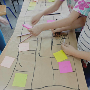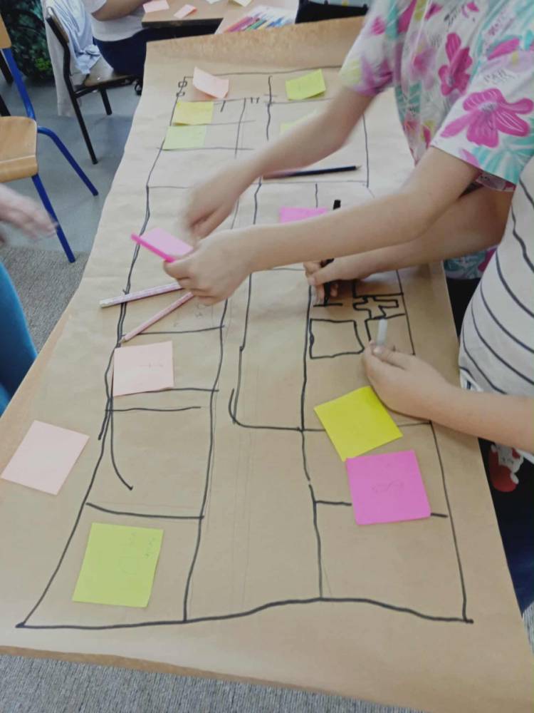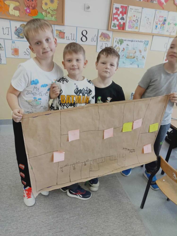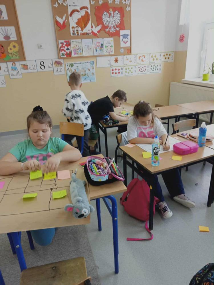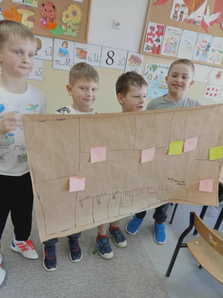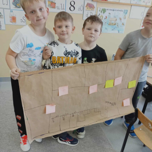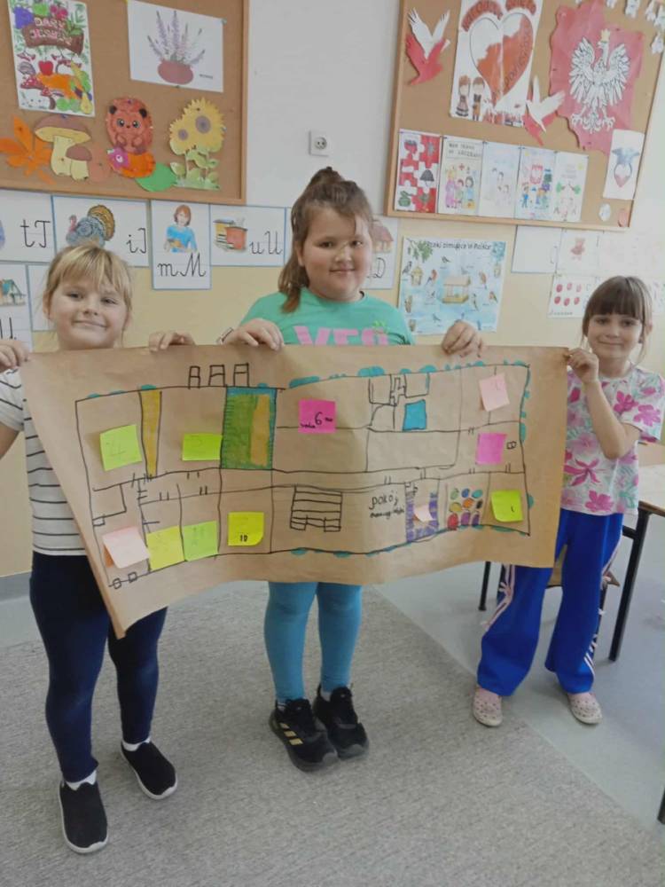 Zanim uczniowie przystąpili do samodzielnego tworzenia planu szkoły, wybrali się na krótki spacer po budynku. Podczas niego starali się zapamiętać numery sal i to, „co znajduje się obok czego”. Dzięki temu łatwiej było im później odwzorować przestrzeń szkoły na kartce papieru.
