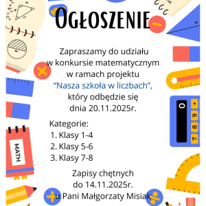 Projekt realizowany jest w ramach programu Fundacji mBanku „mSilnia”, którego celem jest pokazanie zastosowania matematyki w życiu codziennym i w szkolnej rzeczywistości. Dzieci zostały również zaproszone do udziału w konkursie wiedzy matematycznej, który już wkrótce.